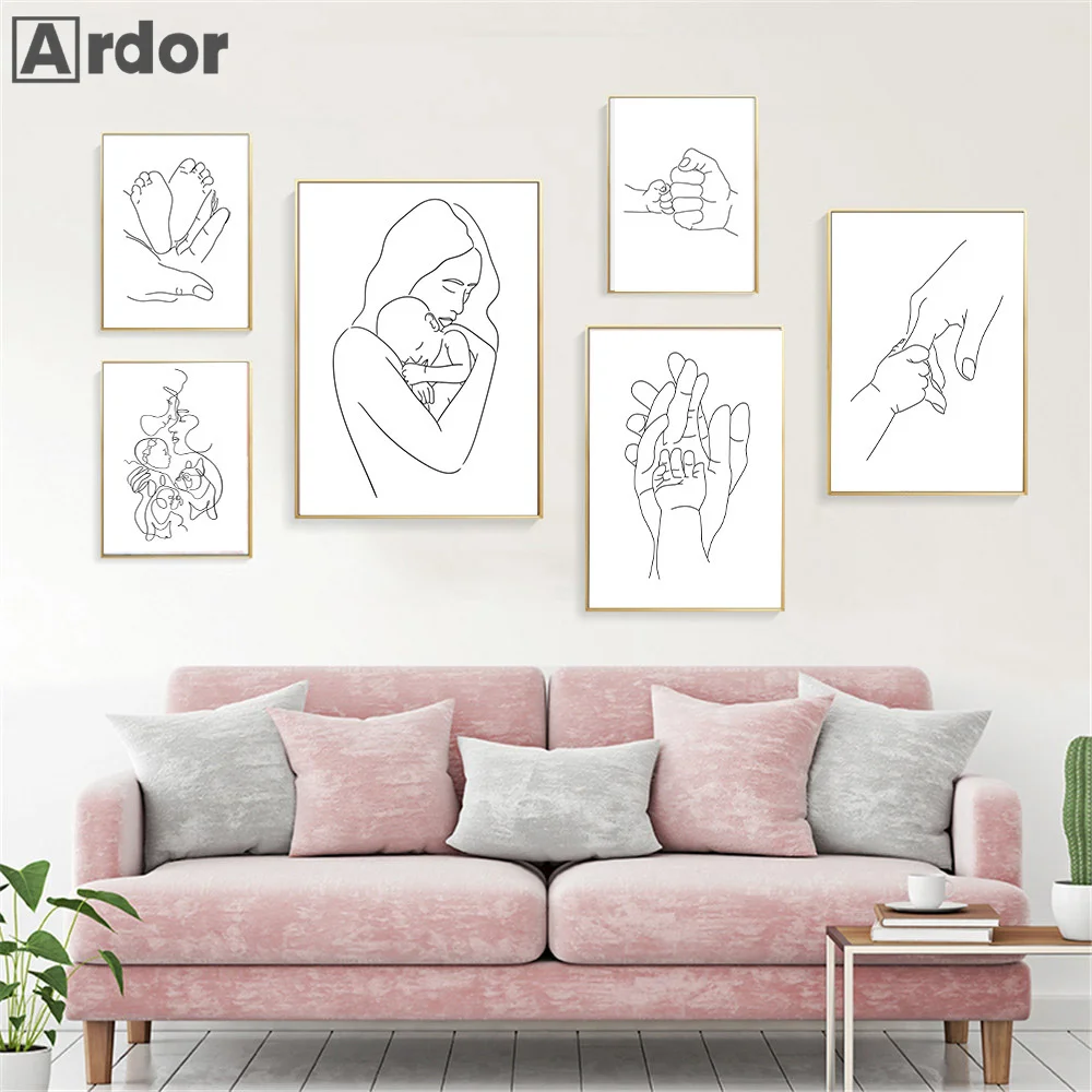 Семейные цитаты принты мама папа абстрактная линия рисование на хол...