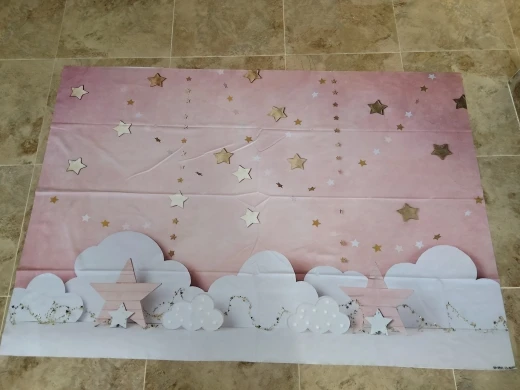 Фотофон Mehofond розовые мерцающие маленькие звезды облака девушка 1-й день рождения торт разбивать Фотостудия