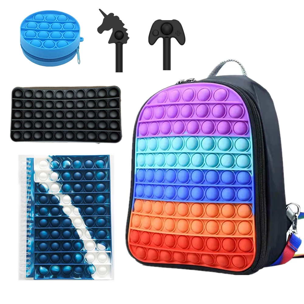 Рюкзак, популярные игрушки-антистресс с пузырьками, школьная сумка ...
