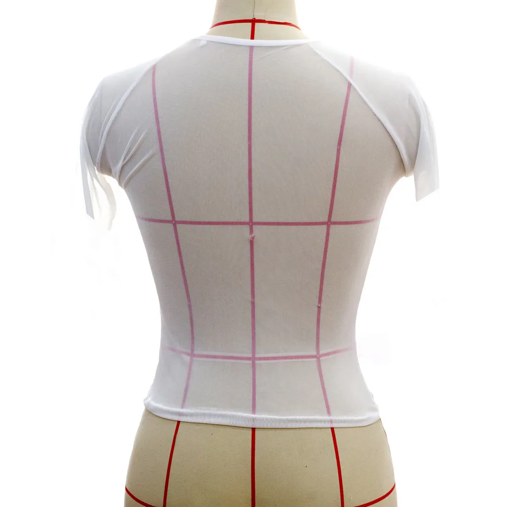 Модные женские полупрозрачные Топы с коротким рукавом, сетчатые полупрозрачные кроп-топы с коротким рукавом, повседневные полупрозрачные Топы с коротким рукавом