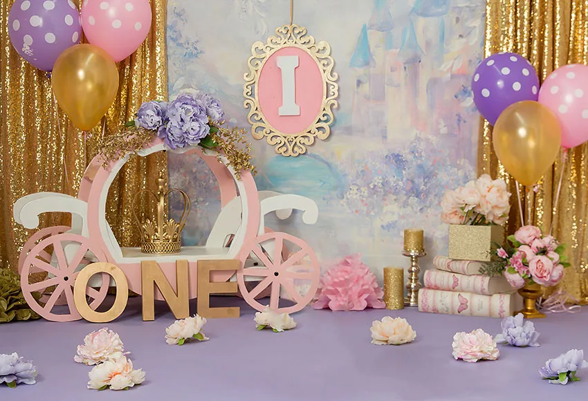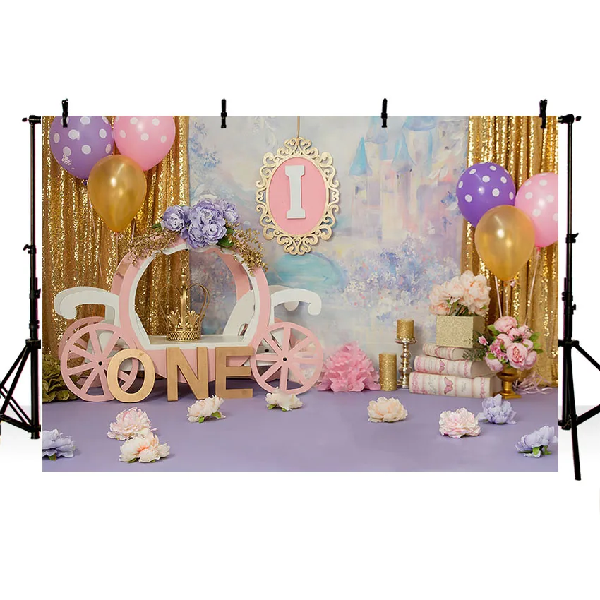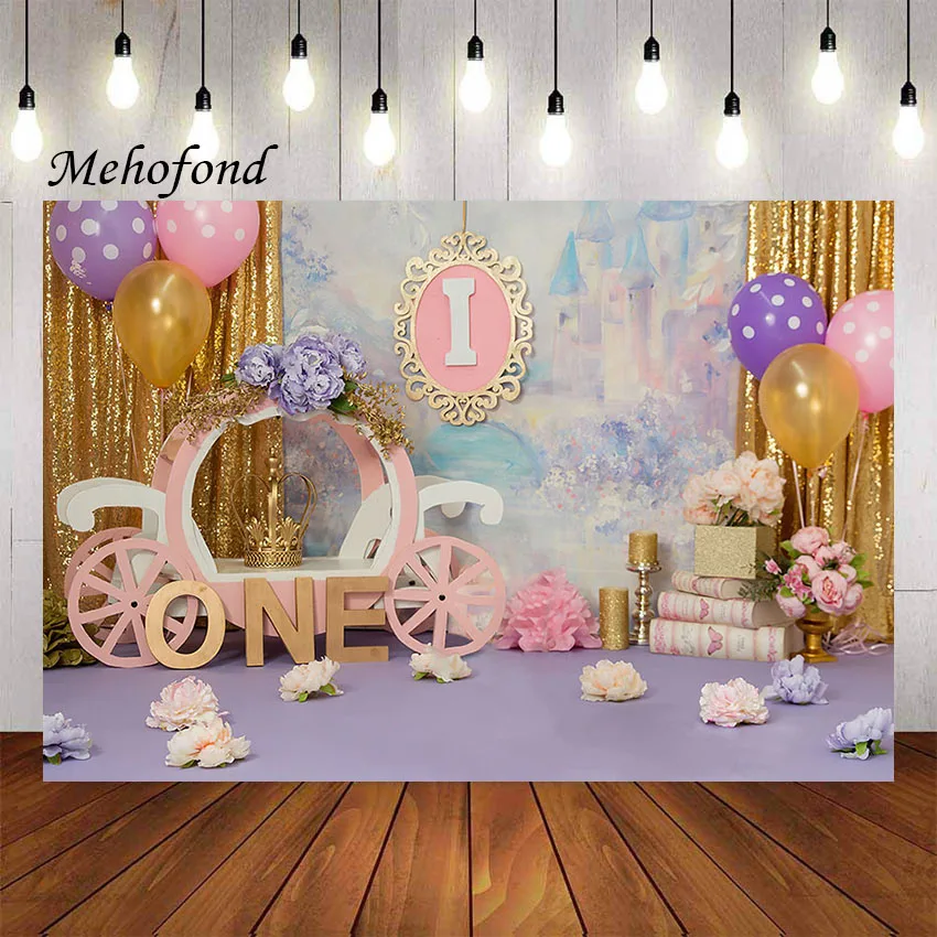 Фон для фотосъемки Mehofond сказочный замок, карета цветы принцесса девушки 1-й день рождения торт разбивать фон фотостудия