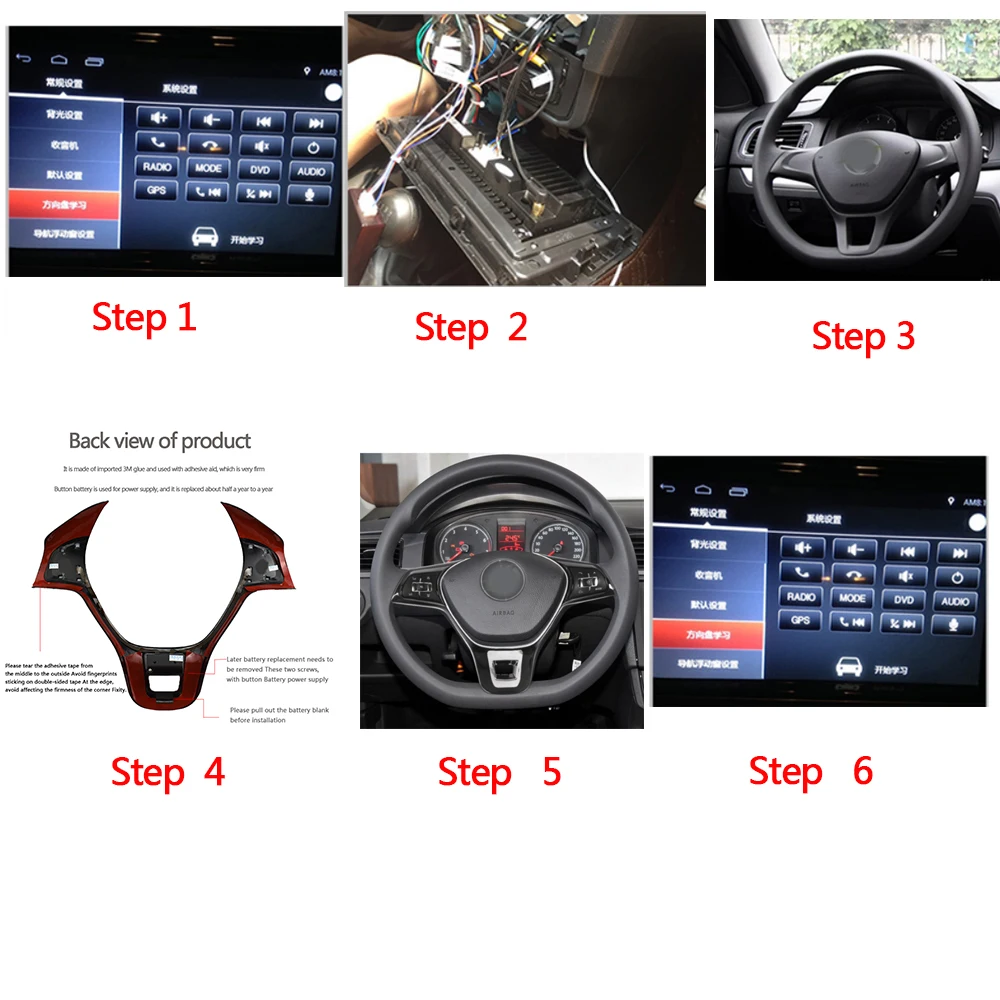 1. Удаление DVD GPS плеера.2. Подключите наш модельный провод к dvd-плееру.3. Протрите руль четко, убедитесь, что его можно наклеить на нашу модель.4. Наклейте наш продукт на оригинальное рулевое колесо.5. Нажмите и удерживайте снова и надежно закрепите их.6. Откройте dvd-плеер и перейдите к настройке функции на руле.