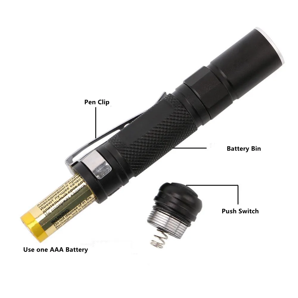 Портативный мини-светильник для ручки CREE Q5 2000LM светодиодный флэш-светильник Фонарь карманный светильник водонепроницаемый фонарь аккумулятор AAA Мощный светодиод для охоты