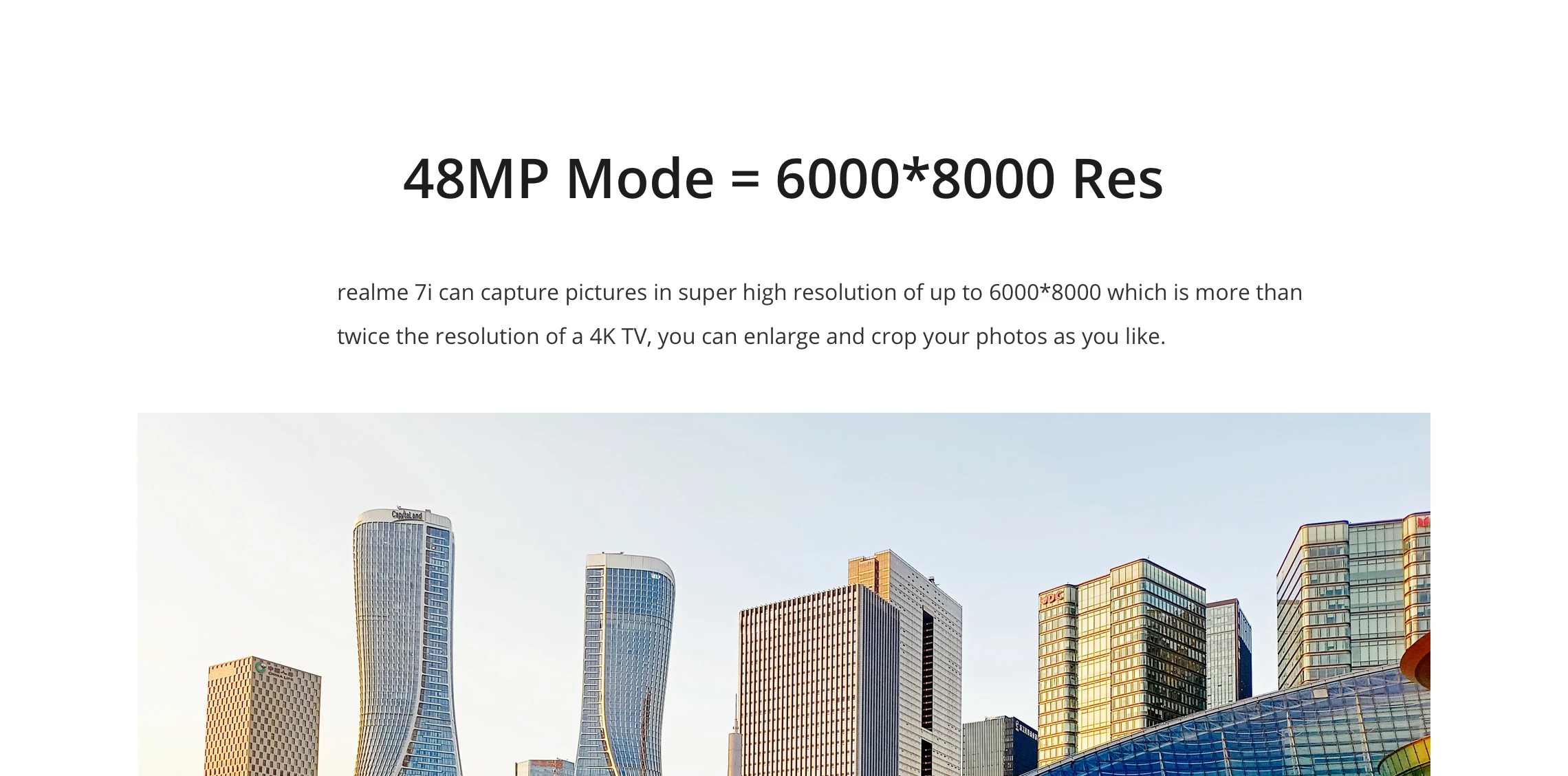 Realme 7i может снимать изображения с очень высоким разрешением до 6000*8000 пикселей, что более чем в два раза превышает разрешение телевизора 4K, вы можете увеличить и обрезать ваши фотографии, как вам нравится.