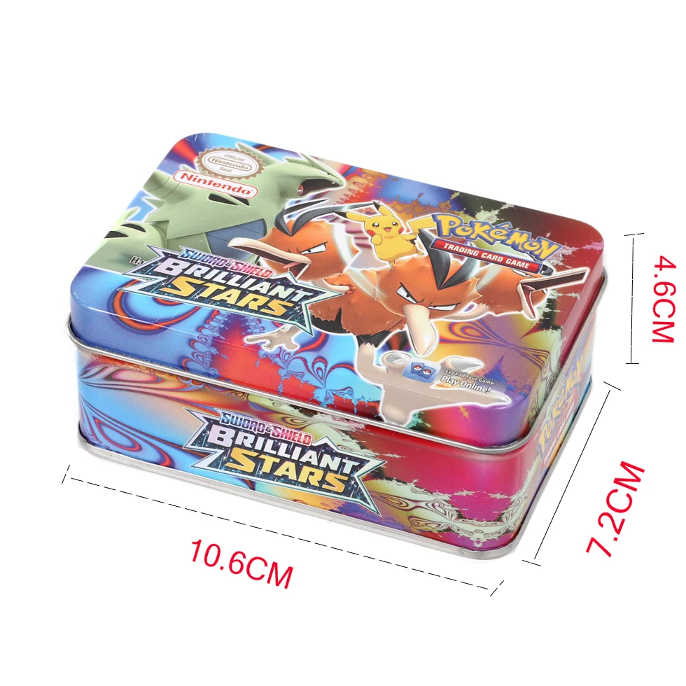 42 шт., карточки с покемонами, железная коробка, блестящие звезды, ...