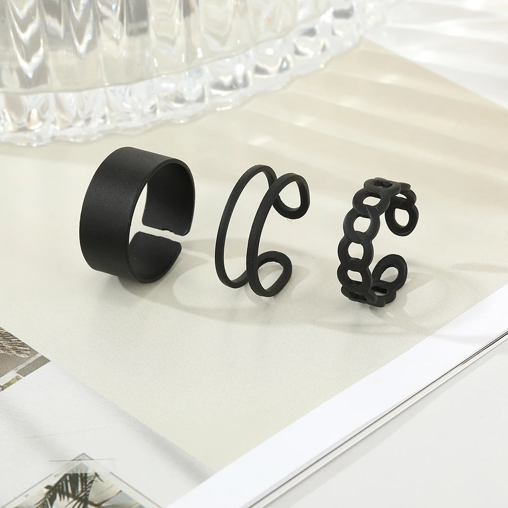 Набор винтажных черных колец для женщин и девушек, простые регулиру...