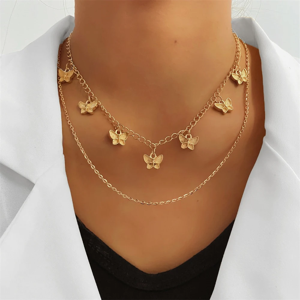 Модное многослойное ожерелье IFMIA с замком-бабочкой для женщин, трендовый чокер золотистого цвета на цепочке, ожерелья, ювелирные изделия для вечеринок, новинка 2022