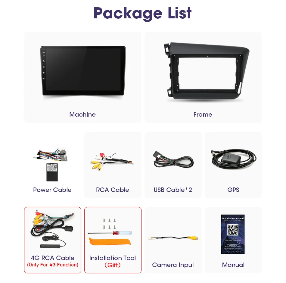 Автомагнитола для Honda Civic 2012-2015 Carplay, 2din, Android 11, мультимедийный видеоплеер, GPS-навигация, головное устройство, стерео, DVD-колонки