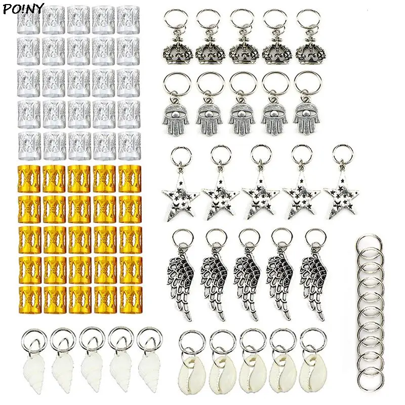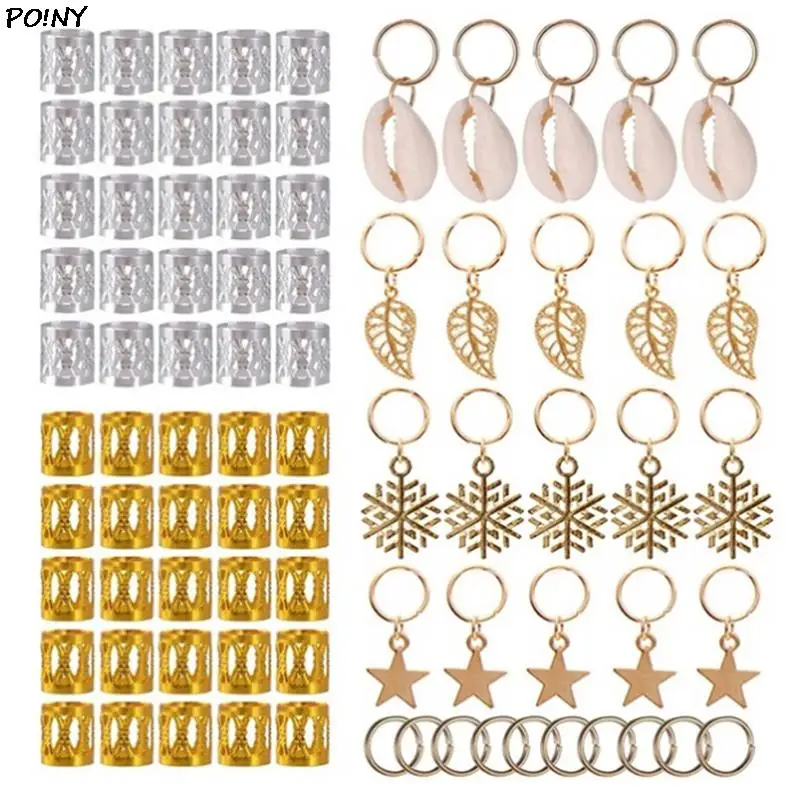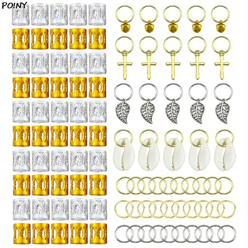 Посылка включает в себя:100 шт./компл.:25 x серебряные бусины дреды25 x золотые дреды бусины30 круглых колец5 x кольца ракушки5 х колец для листьев5 x кольца с колокольчикамиКольцо с крестами-5 шт.