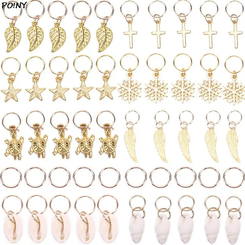 20 штук DIY заколка для волос кольцо Подвески Украшения4 различных формы: ракушки, колокольчики, листья, кресты.Инструкция: заплетите или закрутите волосы в желаемом стиле, закрутите концы, раскройте по бокам Кольца для волос; Их можно легко сделать пальцами (без клещей); кольца со вставками в нужном месте на вашей Косе, закройте зажимы пальцами.