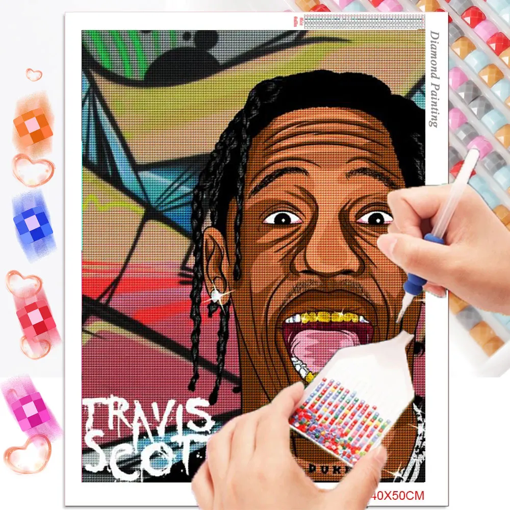 Набор для алмазной мозаики сделай сам, картина 5D из страз в виде рэпера, Тревиса Скотта, для домашнего декора