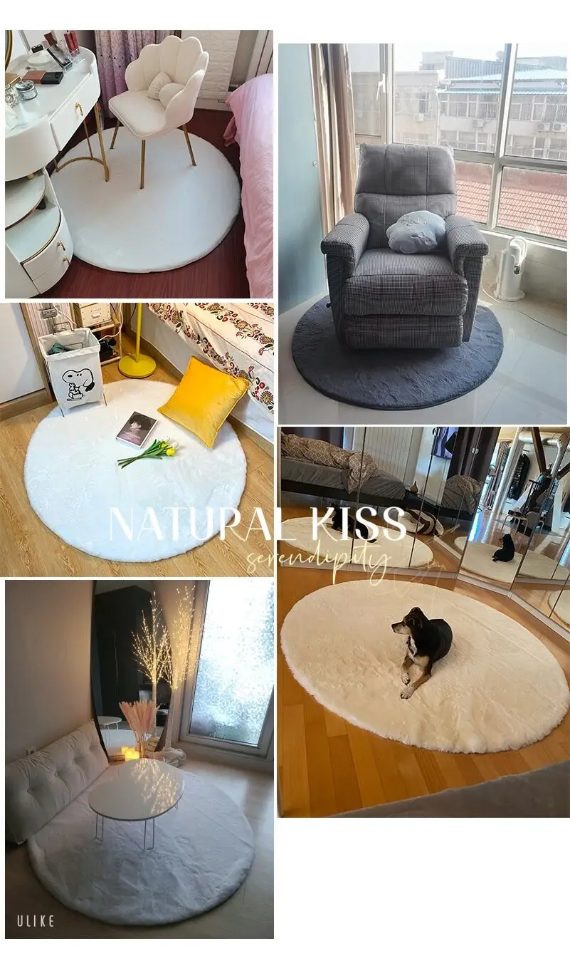 Мягкий круглый ковер из искусственного меха кролика, плюшевый ковер для спальни, белый плюшевый ворсистый ковер, детские игровые напольные коврики для гостиной, ковры