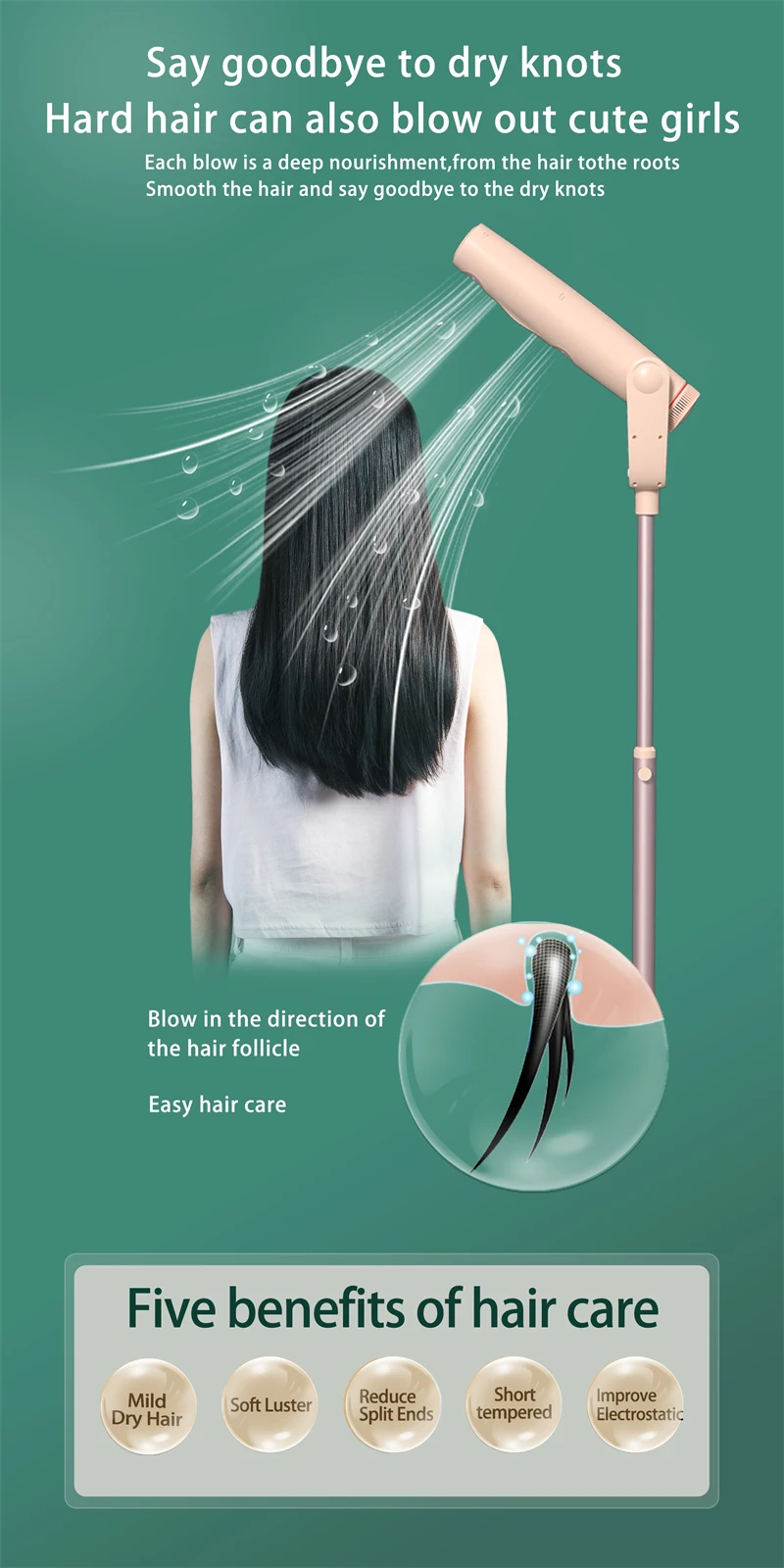 Бытовая Вертикальная фен для волос, свободные руки, отрицательный ионный Уход за волосами Высокая мощность быстросохнущая напольная фен для волос