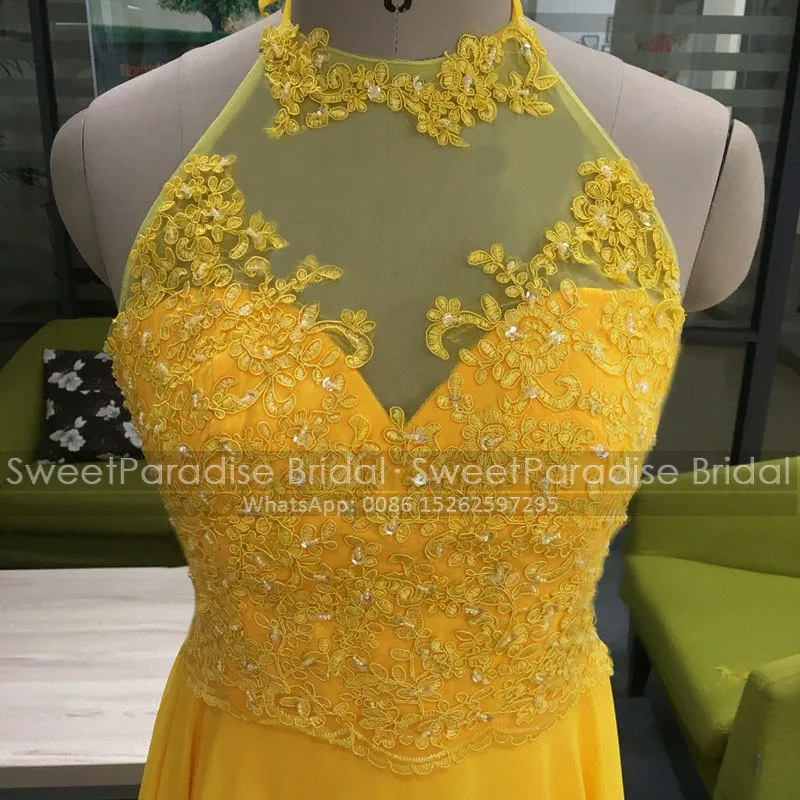 Золотистое желтое шифоновое длинное платье подружки невесты с бусинами Аппликация Прозрачный вырез без рукавов платье для выпускного вечера свадебное платье подружки невесты De Soiree De Mariage