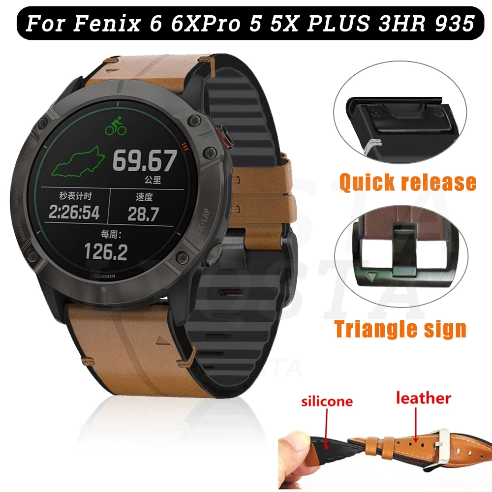 22 26mm Leather Silicone Watchband Straps For Garmin Fenix 5/5X Plus 6/6X Pro Fenix 7X 7 Smart Bracelet Quick Release Wristband