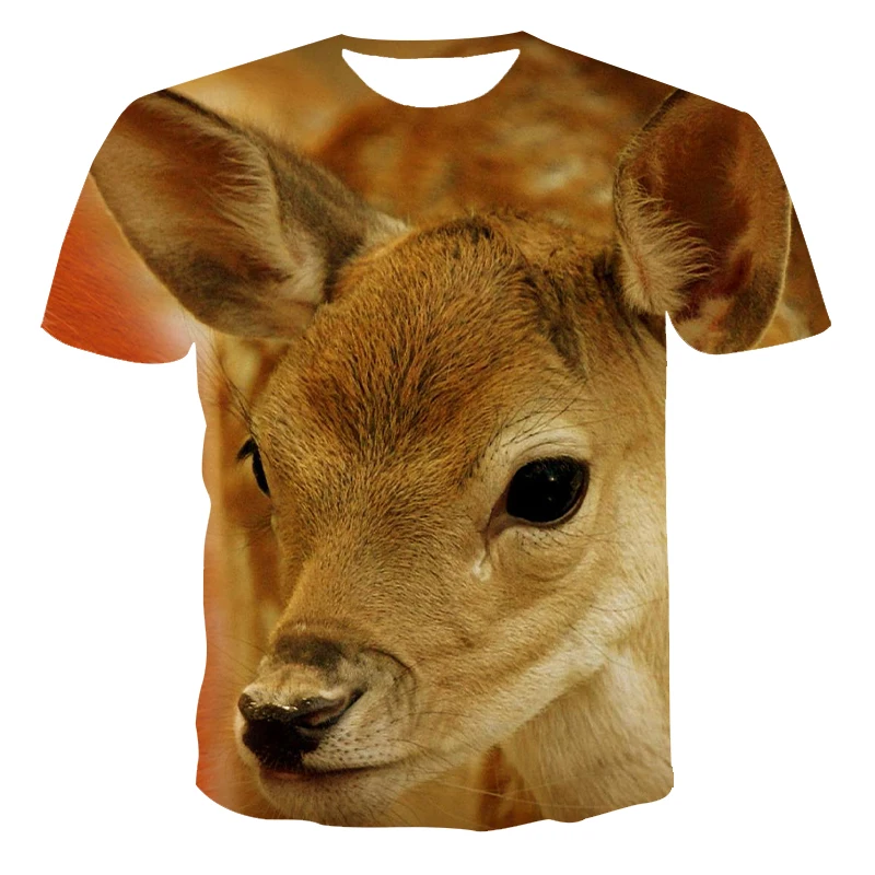 Новая летняя футболка олененок с 3D принтом для мужчин и женщин, модная футболка оверсайз, дышащая универсальная уличная футболка с круглым вырезом и коротким рукавом