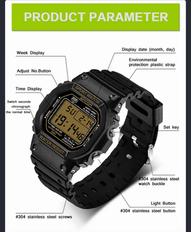 Часы наручные SANDA Мужские Цифровые, спортивные водонепроницаемые ...
