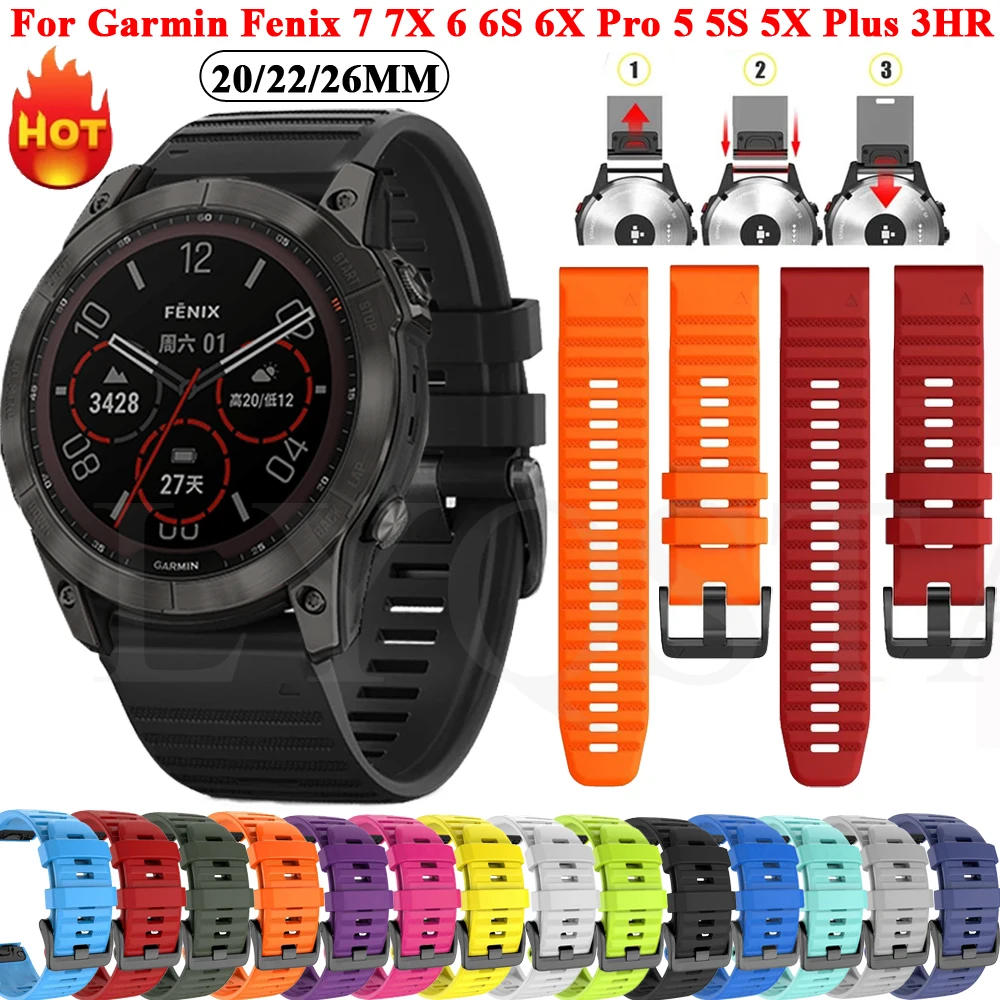 Силиконовый ремешок для наручных часов, браслет для Garmin Fenix 7 7S 7X 6X 6S Pro Easyfit 5 5X 5S Plus 3 HR, 26 22 20 мм