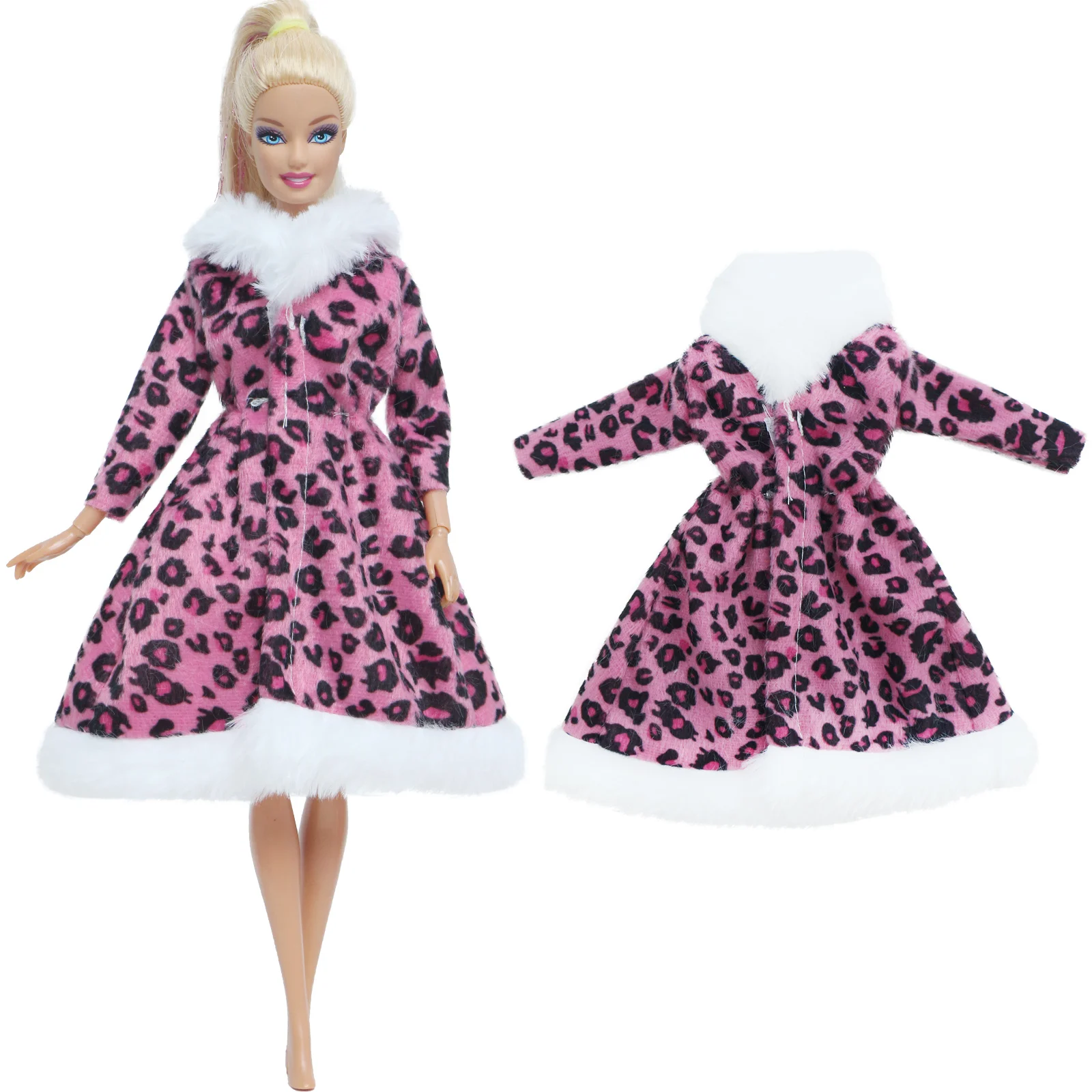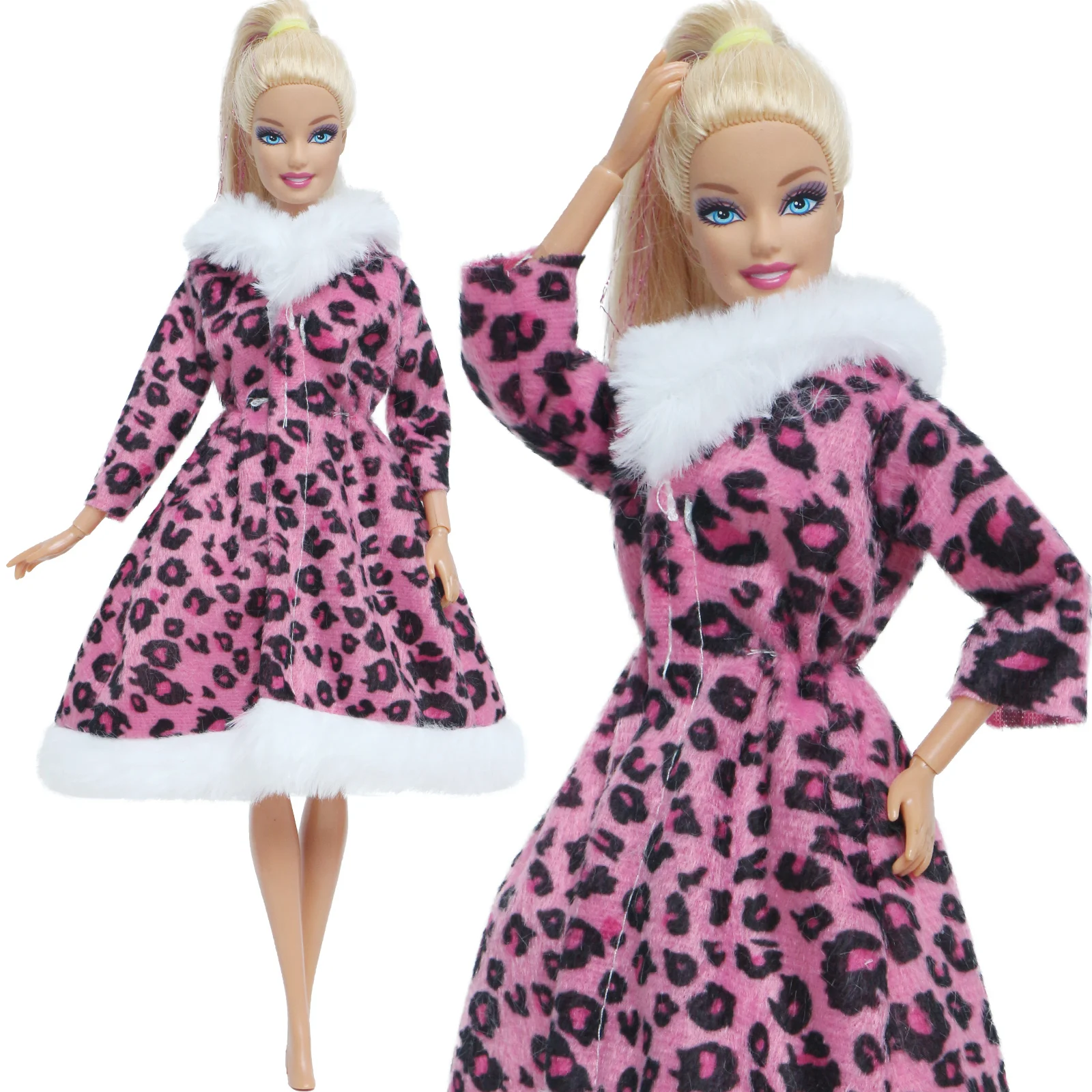 Модное пальто для куклы Барби BJDBUS, Одежда для куклы Барби, игрушка для маленьких девочек, теплый мягкий меховой домик с розовым леопардом, аксессуары для кукольного домика
