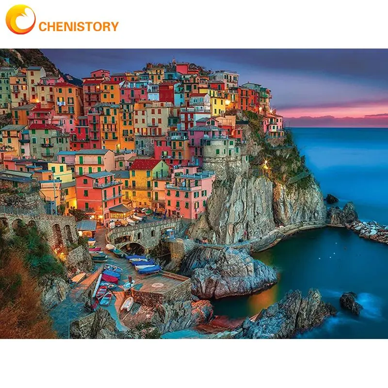 CHENISTORY 5D алмазная живопись с полным заполнением квадратныекруглые Алмазная вышивка побережье Красочный дом пейзаж Набор для творчества домашний декор