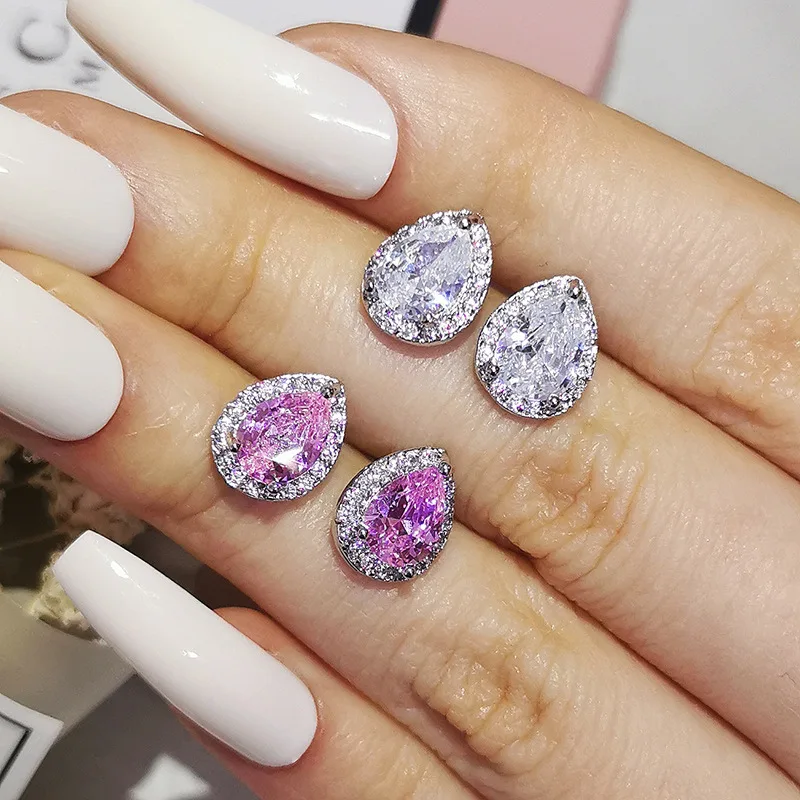 Серьги-гвоздики женские из серебра 925 пробы с бриллиантами