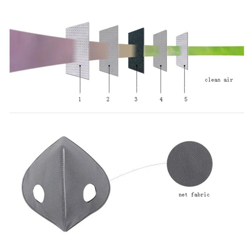 5 слоев маски с активированным углем фильтр PM2.5 анти-противотуман...