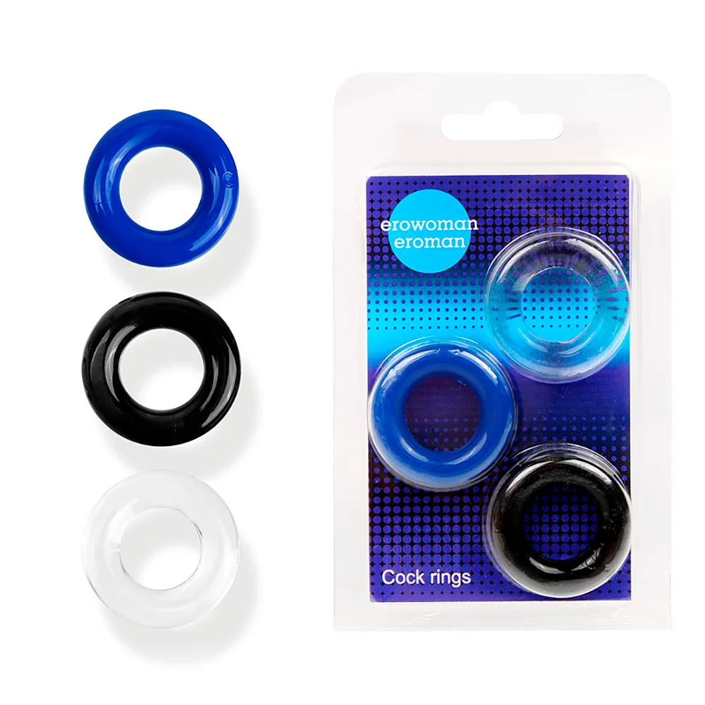 Набор эрекционных колец серии Erowoman-Eroman - источник невероятного эротического удовольствия! Надев любое изделие из данного комплекта, его обладатель получит продолжительную эрекцию и продлит интимную близость. Благодаря оригинальному дизайну набор станет отличным подарком для любимого. Кольца можно брать с собой даже в дальние поездки. Они не займут много места. Комплект изготовлен из приятного на ощупь материала, прост и комфортен в использовании. Долговечен, не требует сложного ухода.