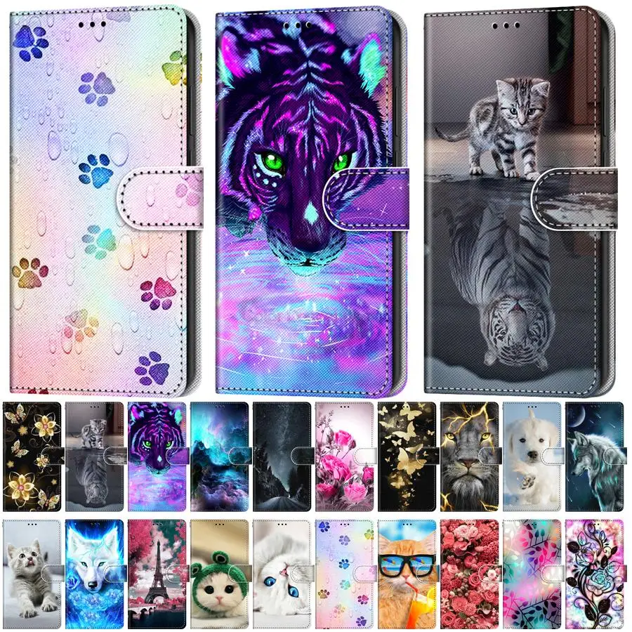 Кожаный чехол-книжка с изображением животных для OPPO A16s OPPOA16 ...