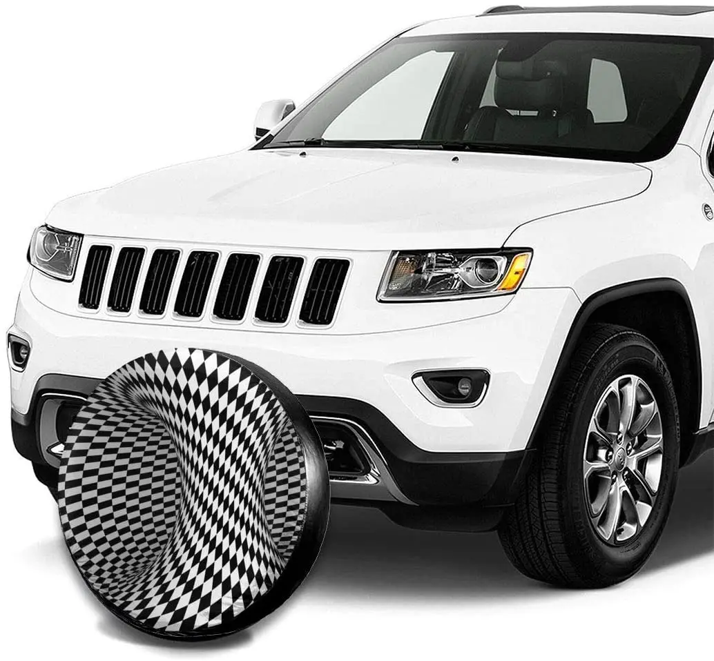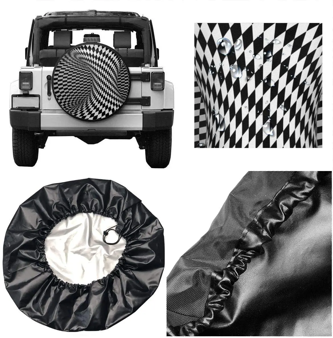 Геометрический квадратный черно-белый запасной чехол для шин, водонепроницаемый пыленепроницаемый УФ-чехол для колес от солнца, подходит для Jeep, трейлера, RV, SUV an