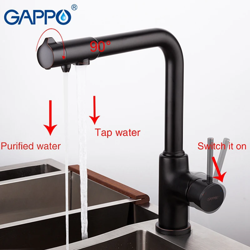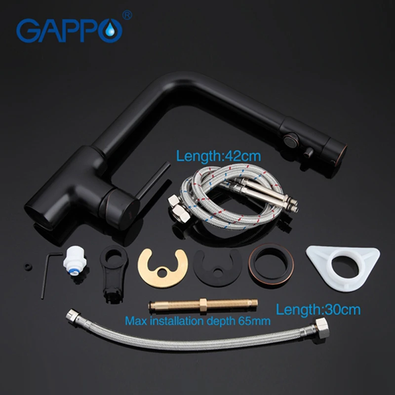 Смеситель для кухни со встроенным фильтром (краном) под питьевую воду Gappo G4390-10, оснащен одной рукоятью для регулировки напора. Прибор оснащен переключателем на обычную и питьевую воду. Оттоки, при этом друг от друга изолированы. Таким образом, водопроводная вода не смешивается с фильтрованной. Аэратор в данном приборе позволяет обеспечить равномерную подачу воды и ее относительноесмягчение. Специальная сетка внутри устройства отфильтровывает разные примеси. Монтируется на шпильке. На нижнюю часть прибора ставится резинка, чтобы смеситель ничего не царапал и не елозил по столешнице, далее вкручиваются шпильки в смеситель. Получившуюся конструкцию ставим в отверстие, насаживаем внизу на крепление и затягиваем Современный смеситель – совмещение классического конструкционного решения и вместе с тем смелого и необычного оформления. Подобная сантехника отлично подойдет тем, кто хочет идти в ногу с нашим временем. К этой категории изделий принадлежит классический тип смесителей, которые изготовлены из латуни – долговечного, прочного, надежного материала. Модели этого вида обрабатываются хромированным покрытием, и в итоге имеют идеальный внешний вид. Прибор обычной округлой формы. Излив прибора способен вращаться, что положительно влияет на функциональность. Оснащен керамическим картриджем, который эффективно смешивает холодную и горячую воду. Также понижается шум подачи воды. Картридж в диаметре 35 мм. Монтаж модели производится на одно отверстие для смесителя. В комплекте идет, инструкция по установке, гарантийный талон, гибкая подводка.
