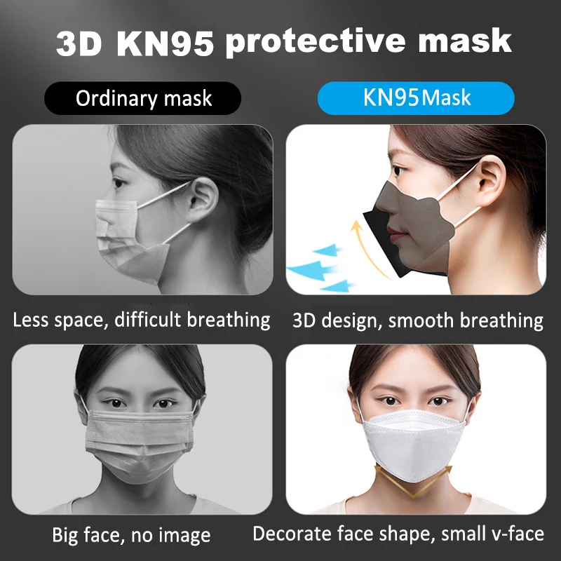 Маска для лица KN95 для взрослых, многоцветная, 4 слоя