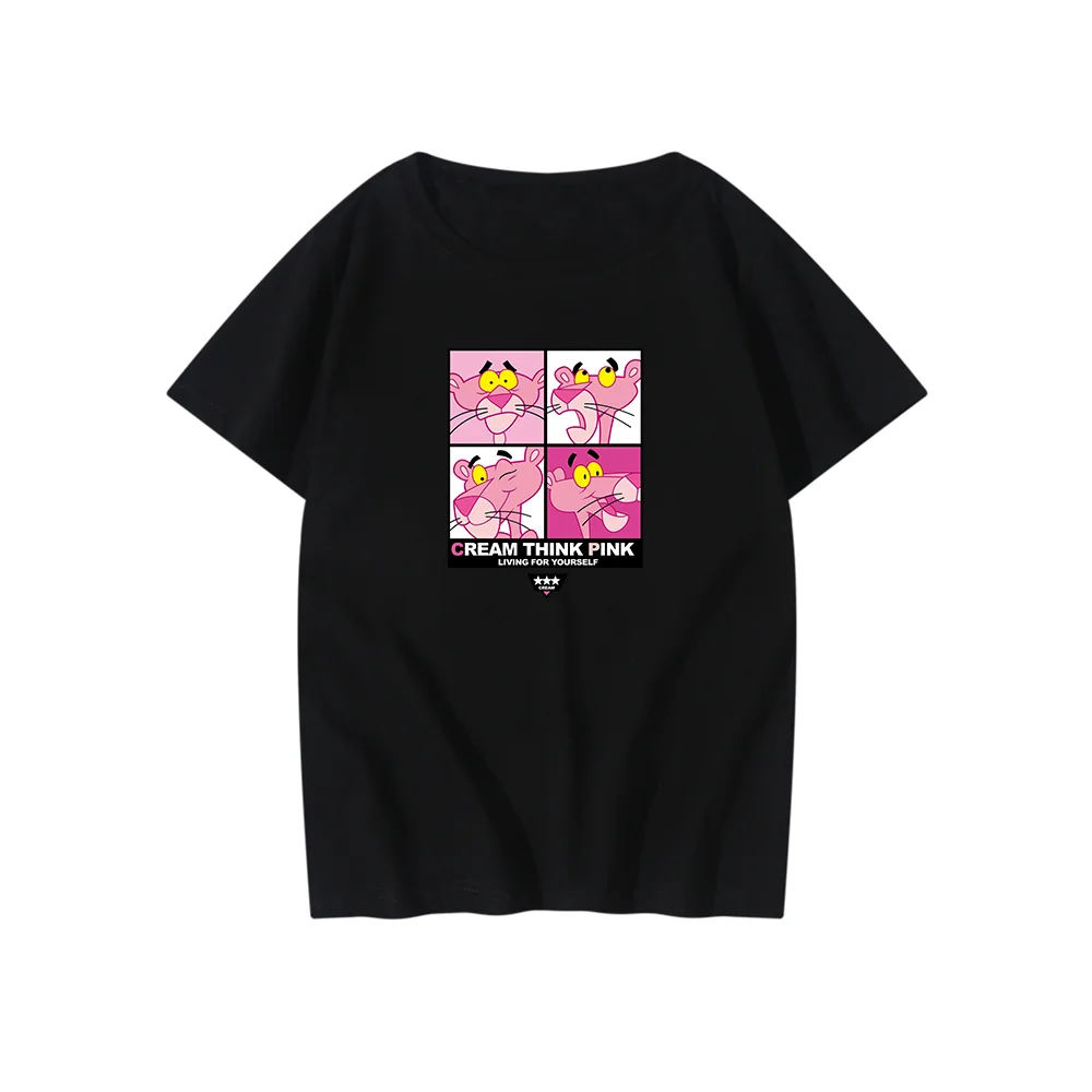 Футболки Disney, Детская футболка, милая розовая футболка с принтом Пантеры, с короткими рукавами, Детская летняя повседневная футболка с рисунком