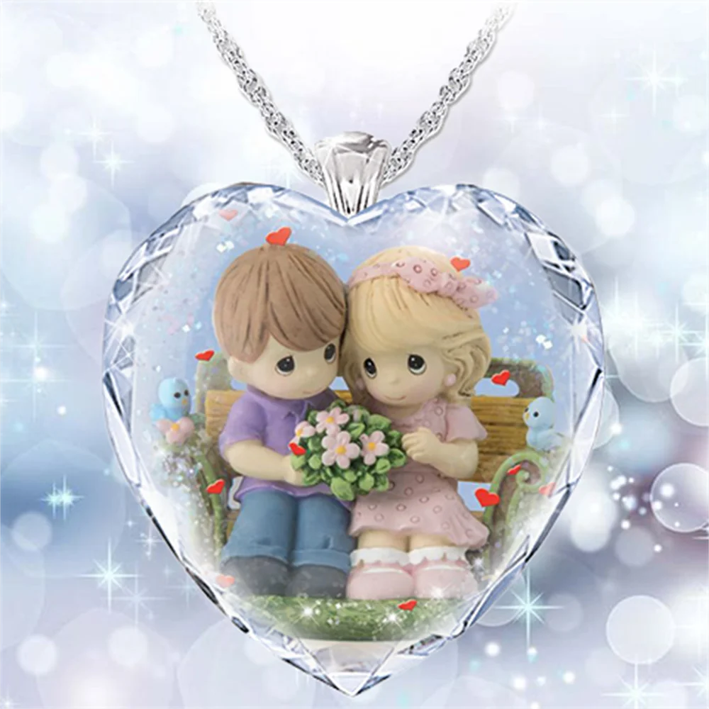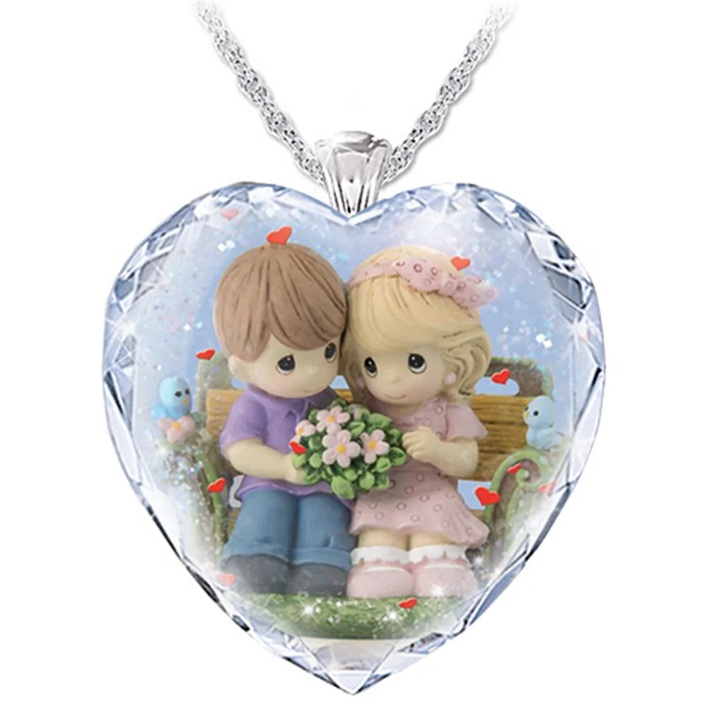 Романтическое ожерелье в форме сердца из мультфильма, хрустальное ожерелье, изысканный женский кулон, аксессуары, модные ювелирные изделия для помолвки вечерние, подарок