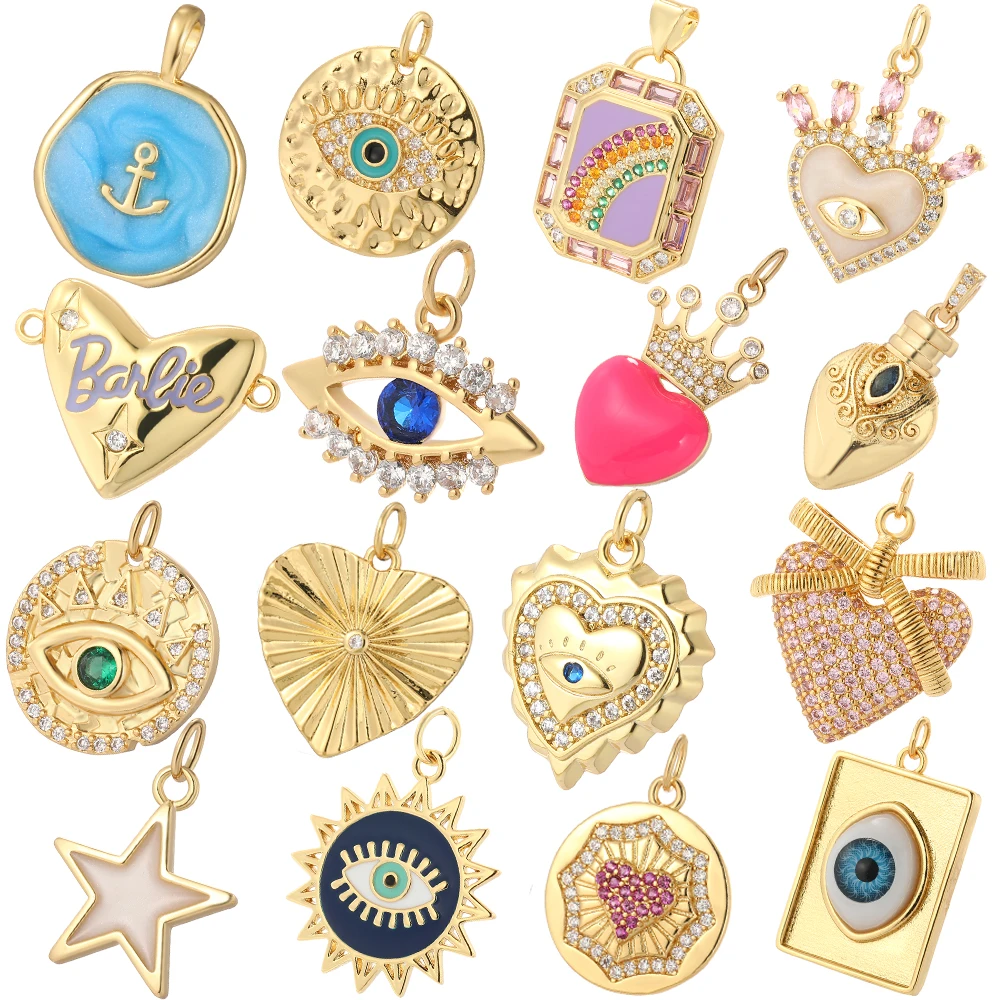 Сердце, греческий глаз, Золотая подвеска, подвески для Diy, серьги, брелок, ожерелье, браслет, злые голубые глаза, подвески для ювелирных изделий, принадлежности