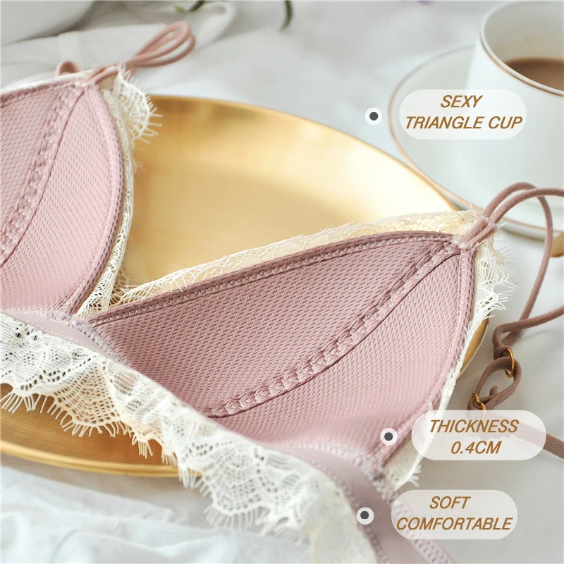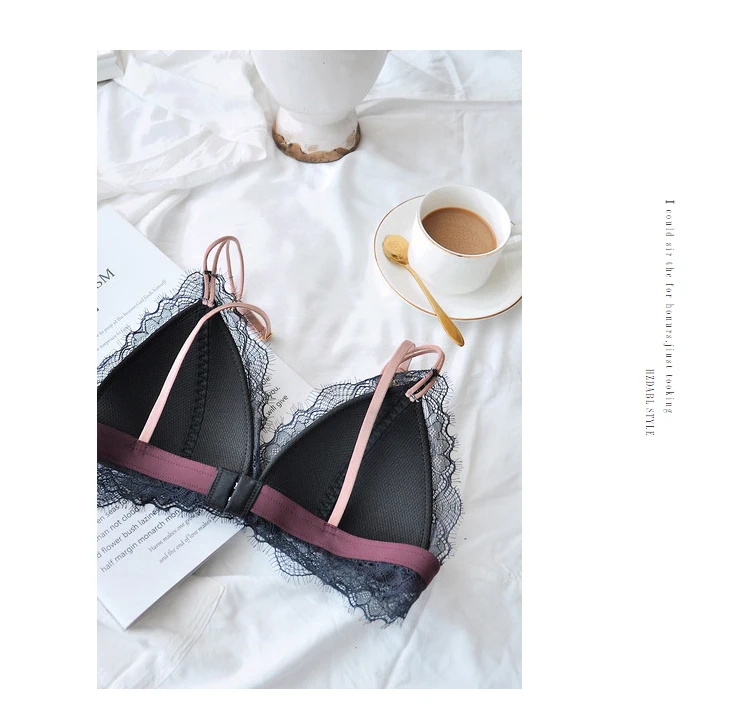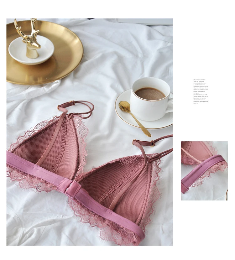 Сексуальный кружевной бюстгальтер без косточек с ресницами, женское нижнее белье, бюстгальтер без косточек, треугольная чашка, маленькая грудь, бюстгальтер, нижнее белье для сеанса