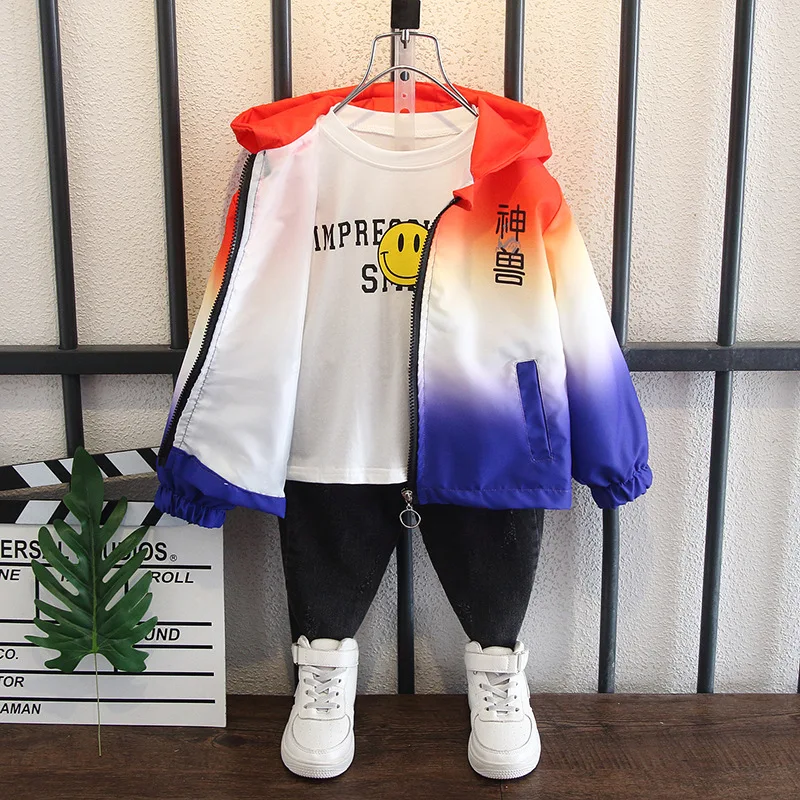 Весна, лето и осень 2022, модное тонкое пальто с капюшоном и цветочным принтом для мальчиков и девочек, детское милое пальто