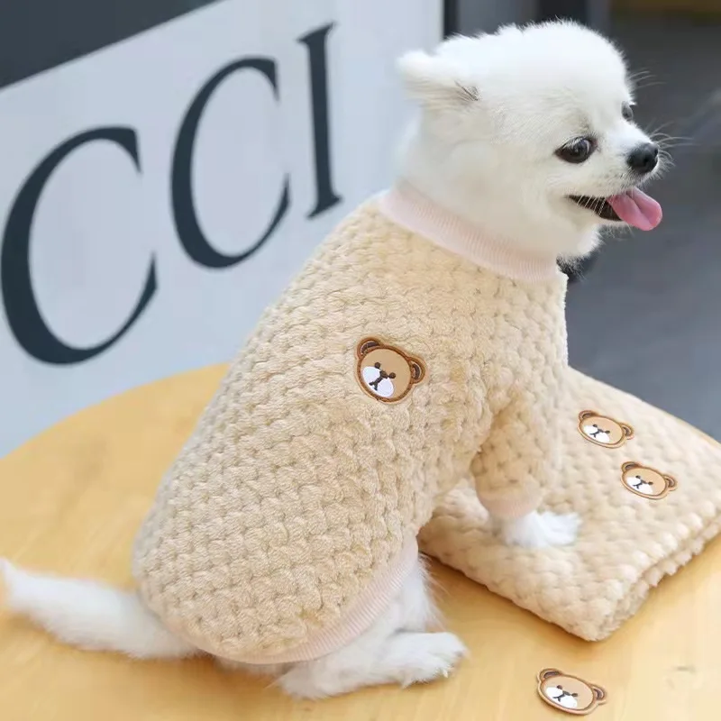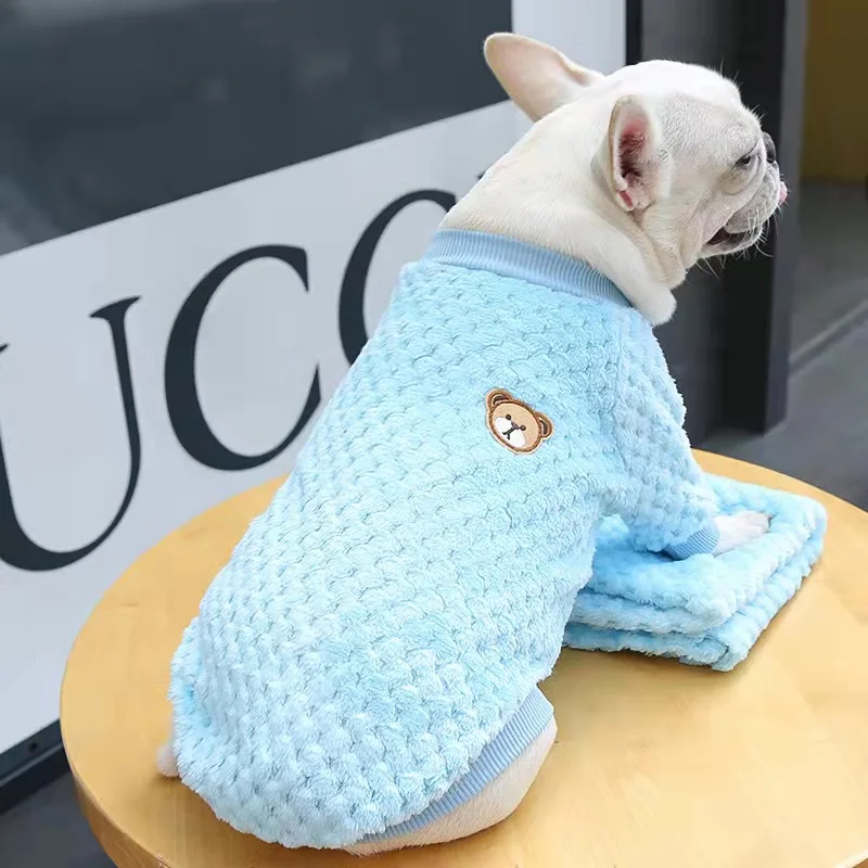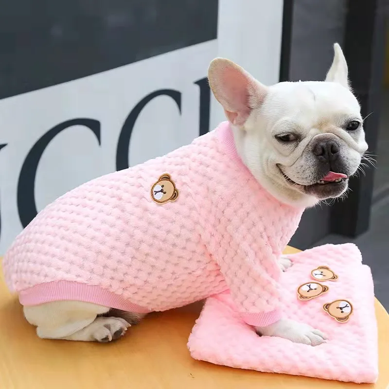 Одежда для домашних животных, теплая бархатная вышивка, однотонная хлопковая мягкая женская рубашка для собак, Джерси, свитер для кошек, платье для бульдога