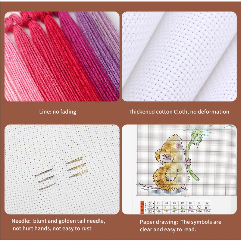 3.Если вы приобрели 11CT крестиком, пожалуйста, используйте 3 нити для вышивки(Одна нить для вышивки может быть разделена на 6 нитей).