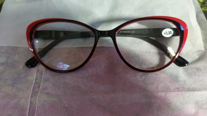 Товар пришёл с небольшим опозданием,очками довольна,стекло прозрачное,видно всё чётко ,оправа стильная.Спасибо