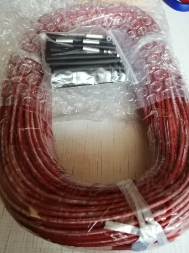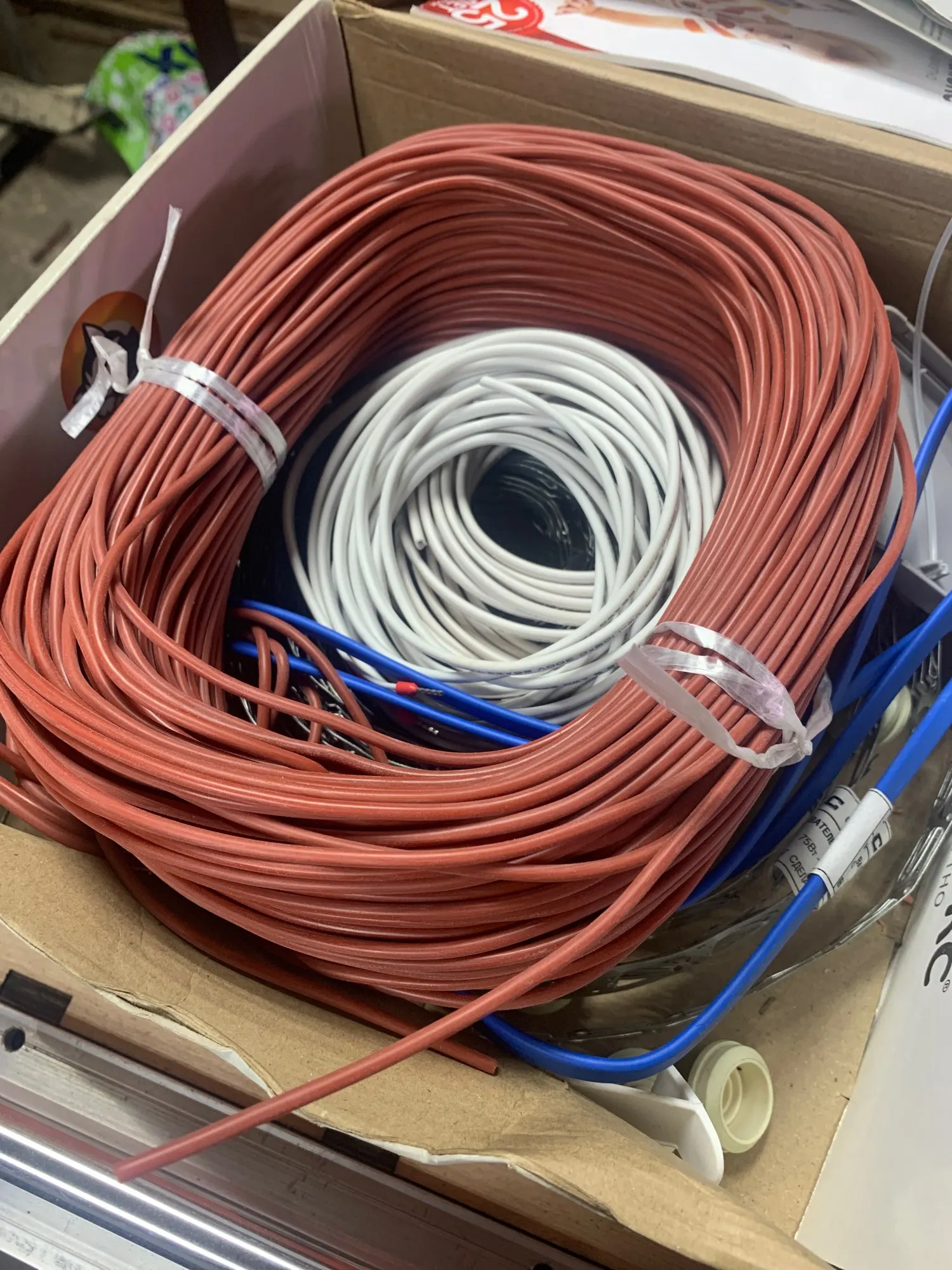 Моток шнура, как будто тальком обработан. Обжимные в комплекте, позже будет теплый пол путем создания паза ушм и укладка сего чуда плиточным клеем.