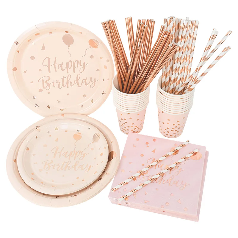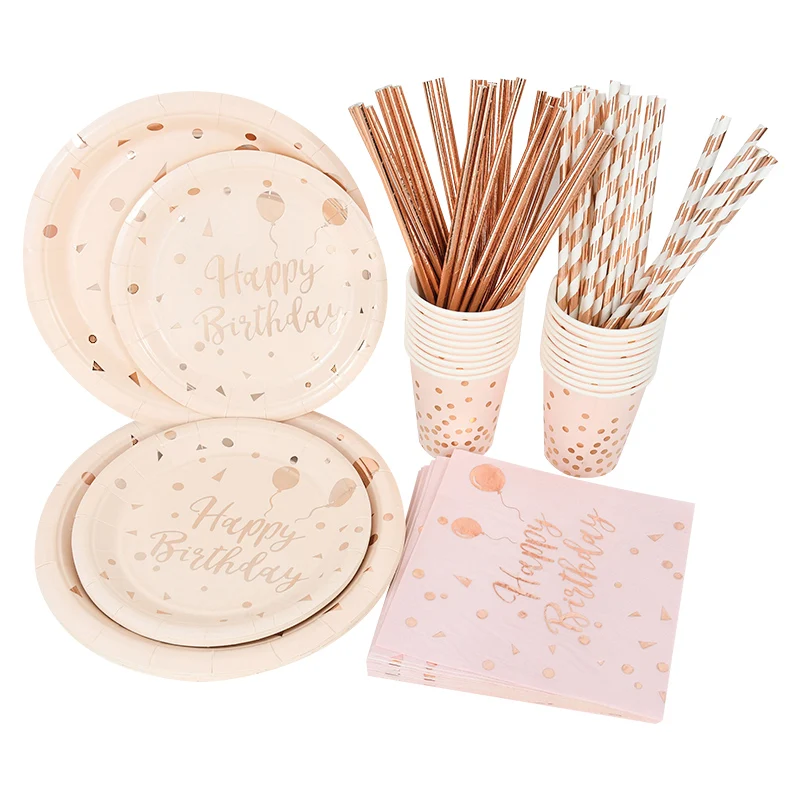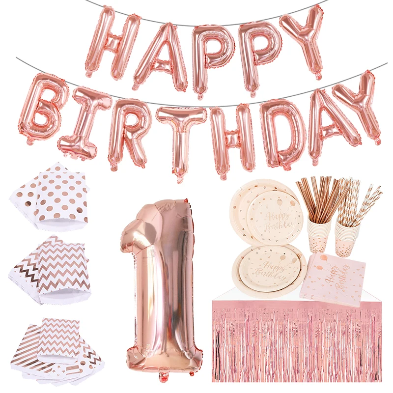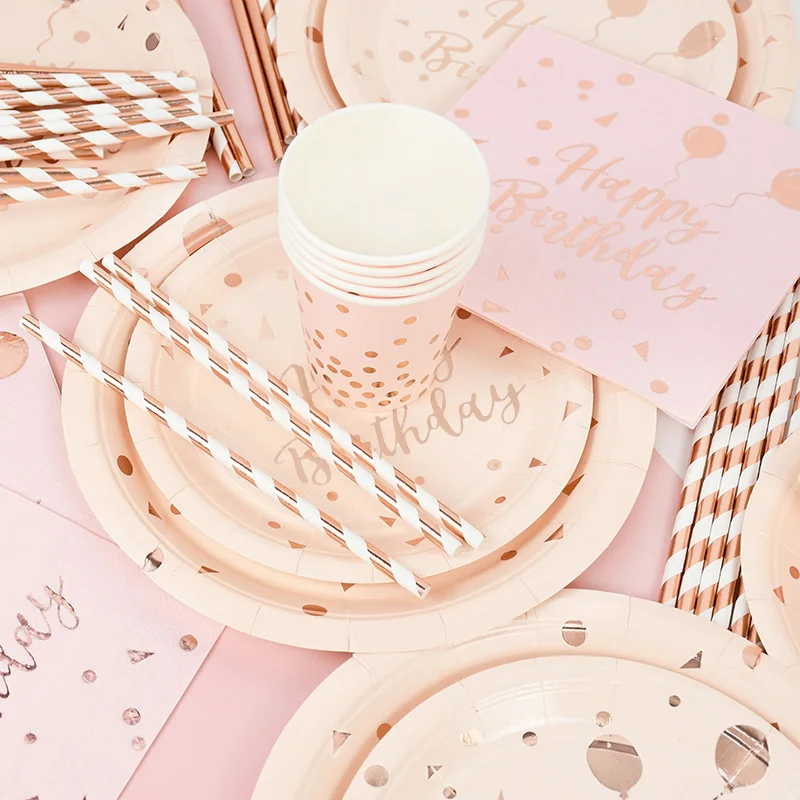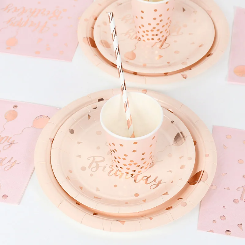 Розовое золото, Искусственные женские салфетки для дня рождения, розовые золотые воздушные шары, тарелки, домашний декор