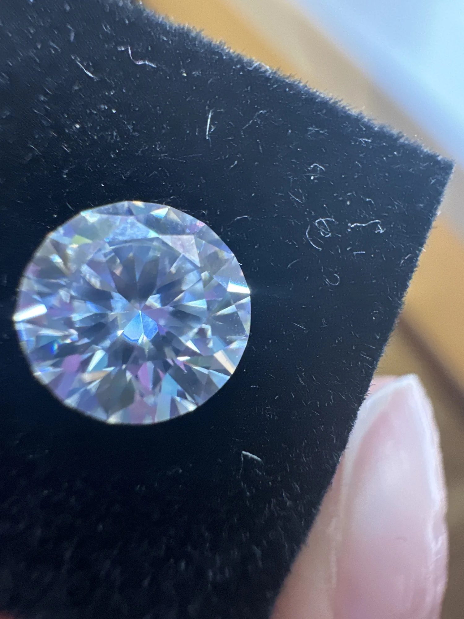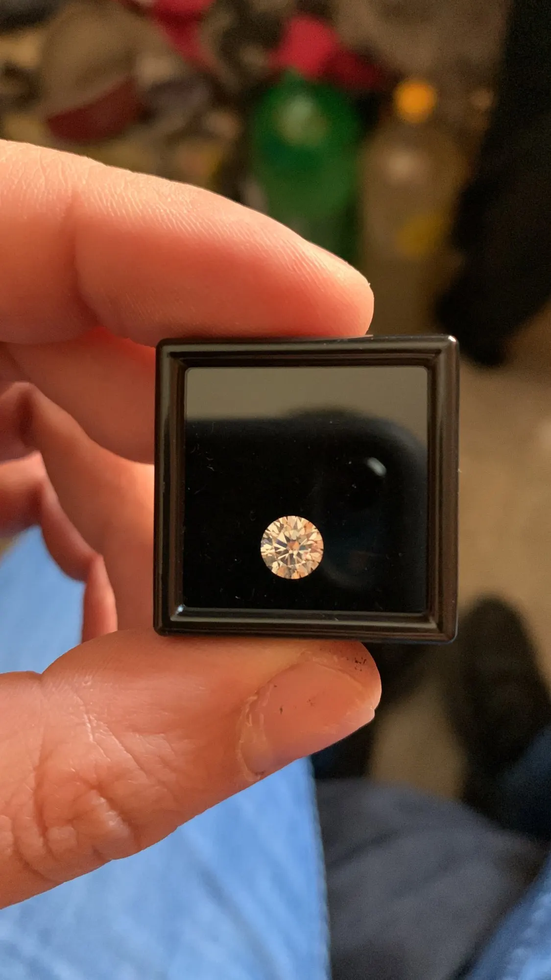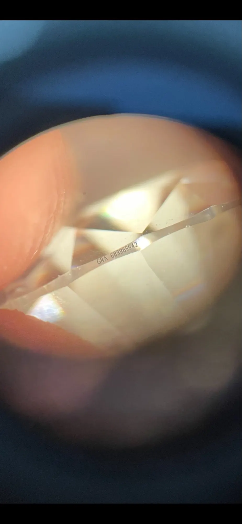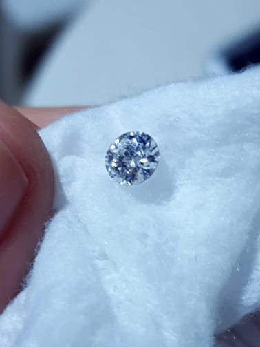 Супер блестящий, я люблю его. Не удалось't увеличить макро @-@ объектив на телефоне, чтобы увидеть номер, нужна Ювелир Лупа. Выглядит супер чистым и блестящим может't перестать смотреть на него. Я рекомендую приобрести больший, если вы можете себе это позволить, я купил 1 карат, но я хотел бы заказать больший. Великолепная вещь