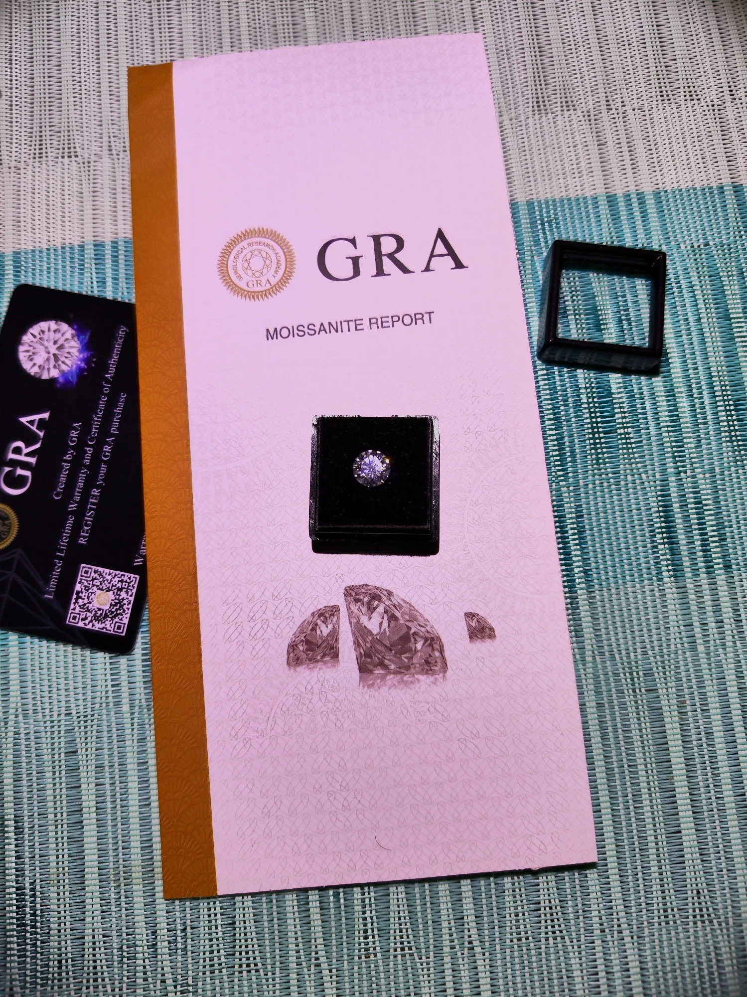 Это идеально! Настоящий Муассанит! Реальный отчет реальная информация (не просто бесполезная бумага) Реальный серийный номер, я 'м очень удивлен ценой! Если мне нужно больше в будущем, я обязательно куплю у этого продавца.