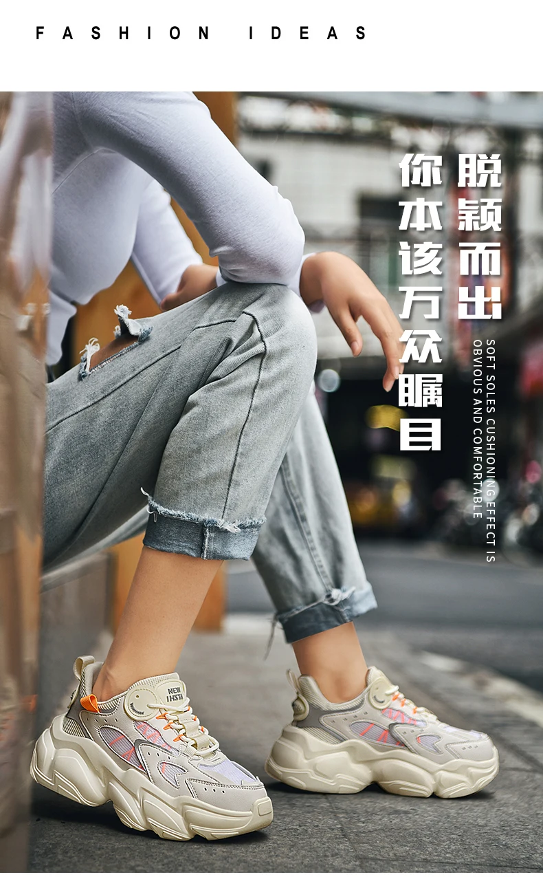 Кроссовки унисекс сетчатые для бега, модная массивная спортивная обувь на платформе, парные прогулочные туфли, весна