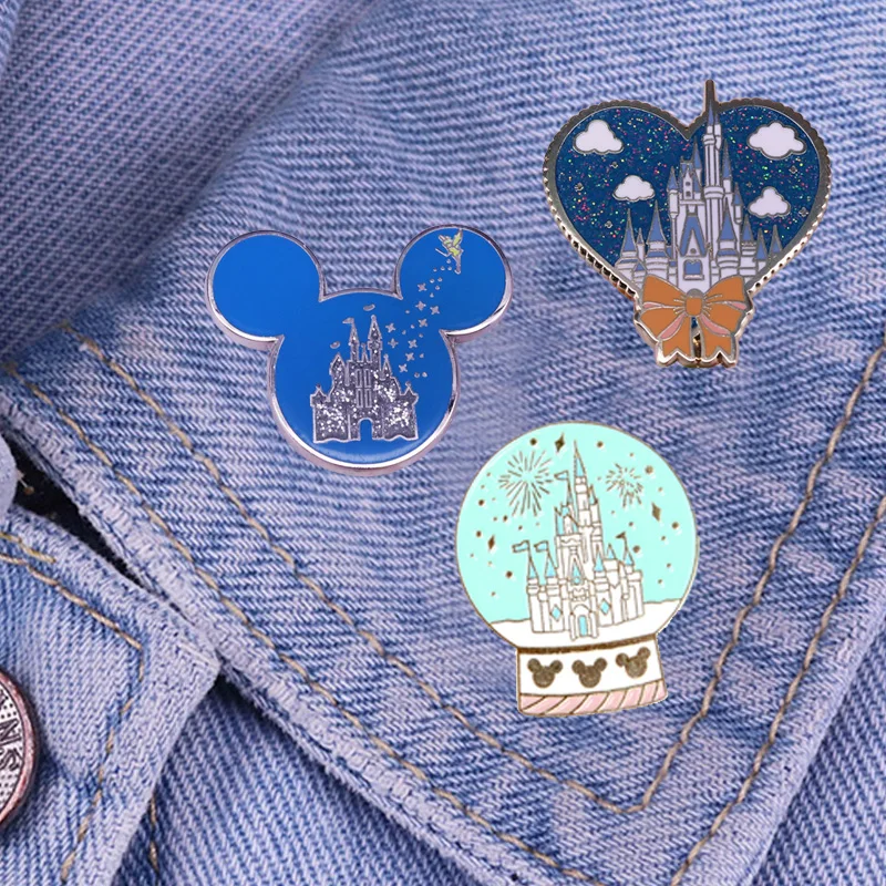 Классическая модная брошь с ушками Диснея Микки, блестящая брошь в виде замка, сказочный значок с фейерверком, значок с изображением милой девушки, эмалированная Бриллиантовая бижутерия