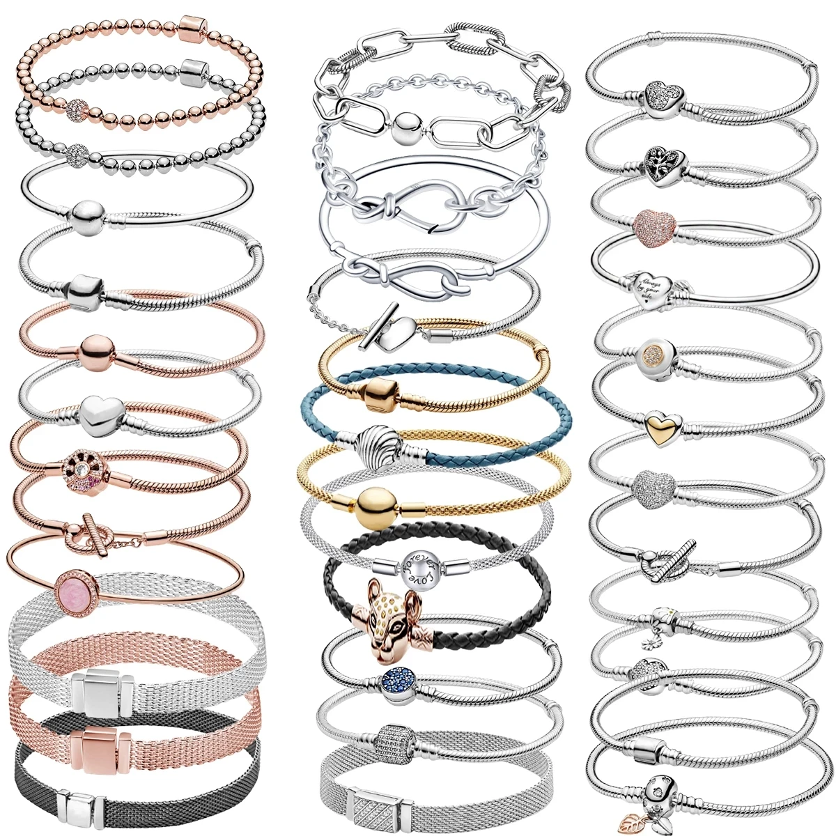 Оригинальные серебряные браслеты, Wishbone, Сердце, синий дисковый веер, застежка сердца, T-Bar, змеиная цепь, браслеты дружбы