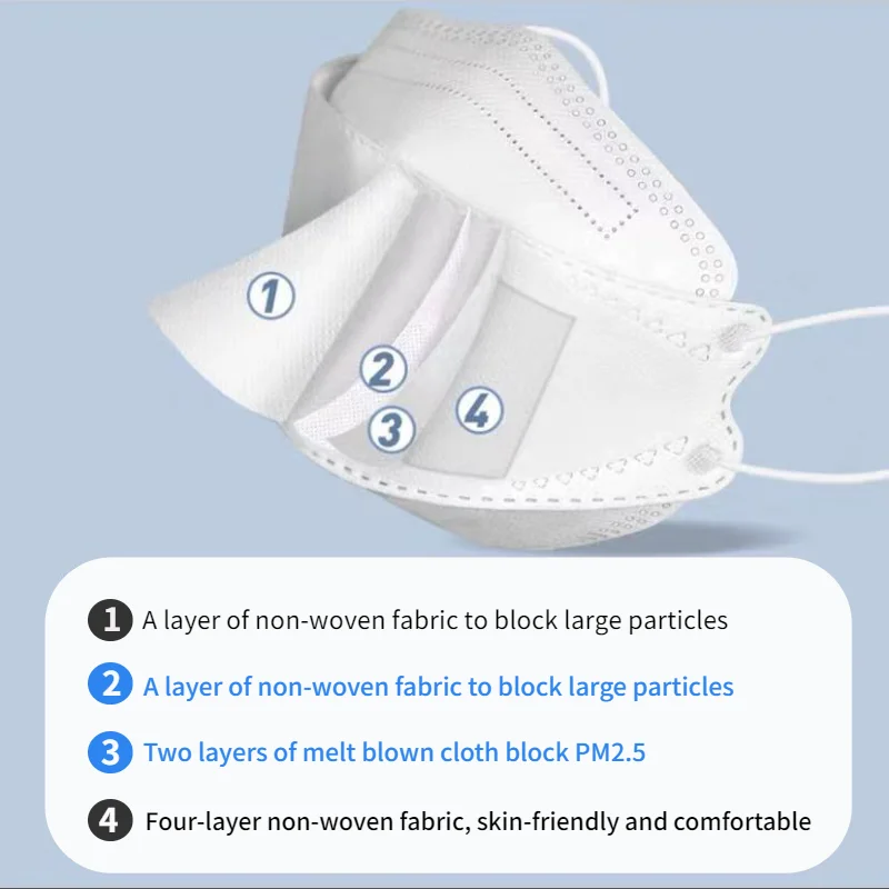 ① Удобно носить.②Хороший эффект фильтрации, особенно для очень мелких частиц и пыли.③ Подходит для различных форм лица.④ Высококачественный защитный эффект. Его защитный эффект такой же, как и маска KN95, европейская маска FFP2.Applicable применяется в различных средах, где защитные маски необходимо носить в течение длительного времени, таких как фабрики, школы, компании, торговые центры, песчаные бури, строительные площадки, больницы, парки и т. Д.
