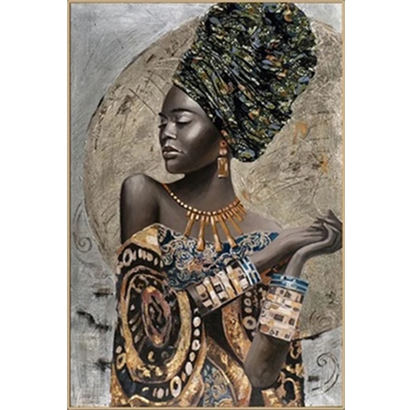 Африканское искусство, черная и Золотая женщина, картина маслом, холст, искусство на стену в скандинавском стиле для гостиной, домашний декор