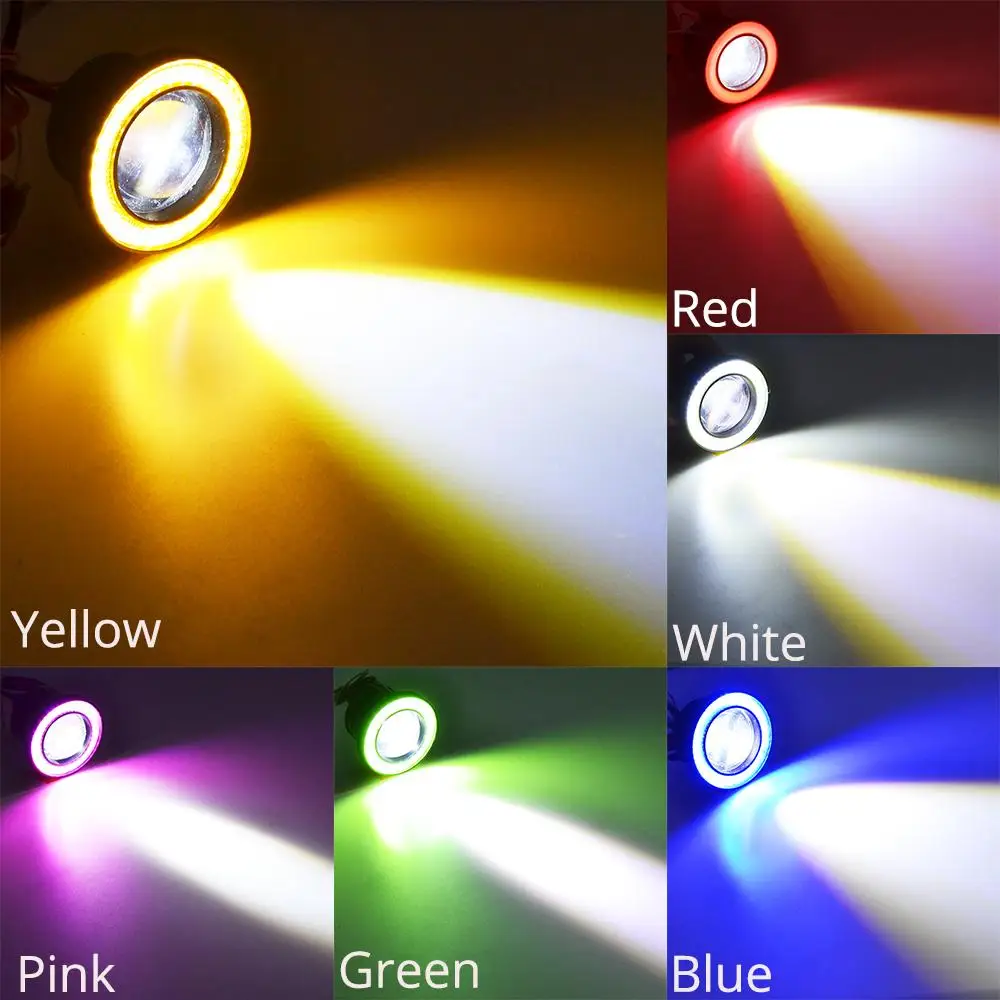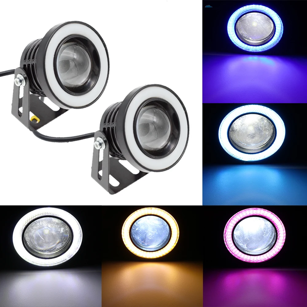 Универсасветильник Противотуманные фары COB, 2 шт., 12 В, светодиодные дневные хосветильник огни разных цветов на выбор, водонепроницаемые супер яркие противотуманные фары с ангельскими глазами 89 мм