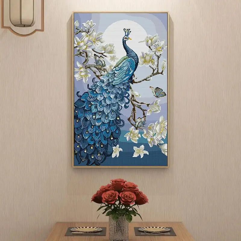DIY животный узор синий павлин вышивка крестиком набор 14CT 11CT отсчет штампованный холст ткань игла швейный набор домашний декор